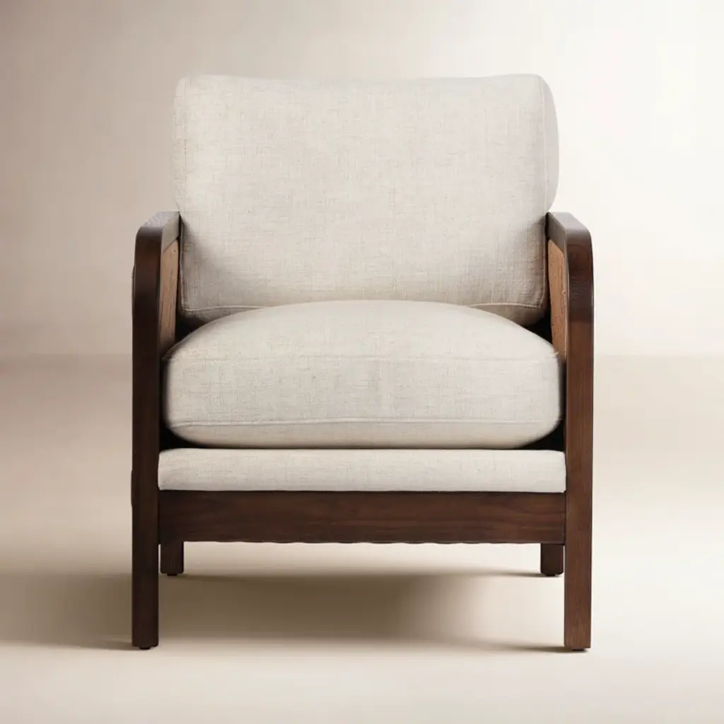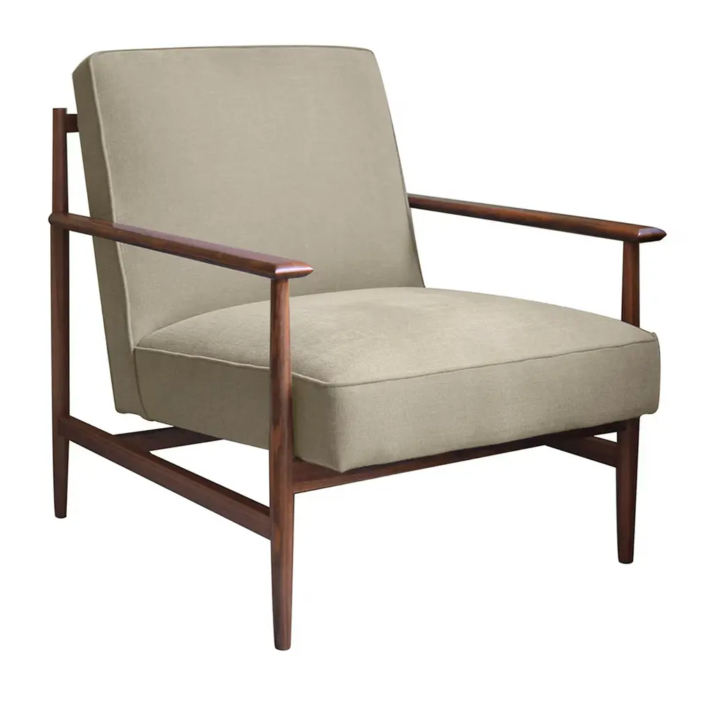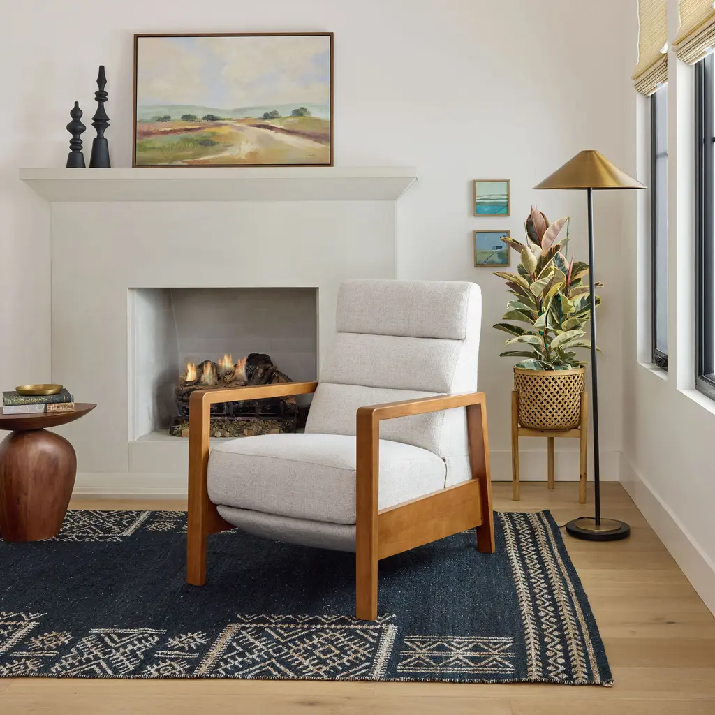 Crafted with a dark walnut-finished wood frame and premium upholstery, the Erik lounge chair reclines with a push-back mechanism free of visible hardware. Erik is available in two styles: in gray vegan leather with a channel-tufted back or tactile oatmeal-toned tweed with a plush backrest. Setting up your modern or contemporary living space for elevated relaxation, this mid-century recliner invites you to lean back and find your perfect angle.