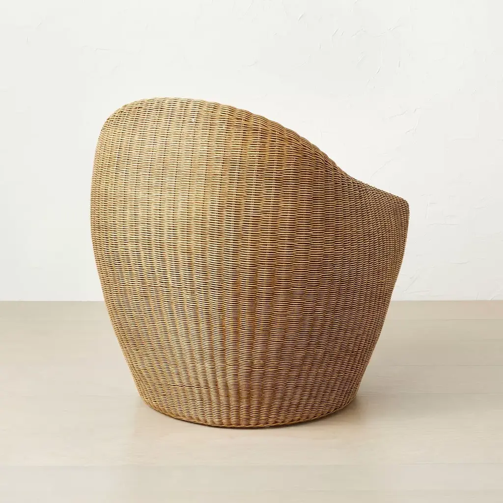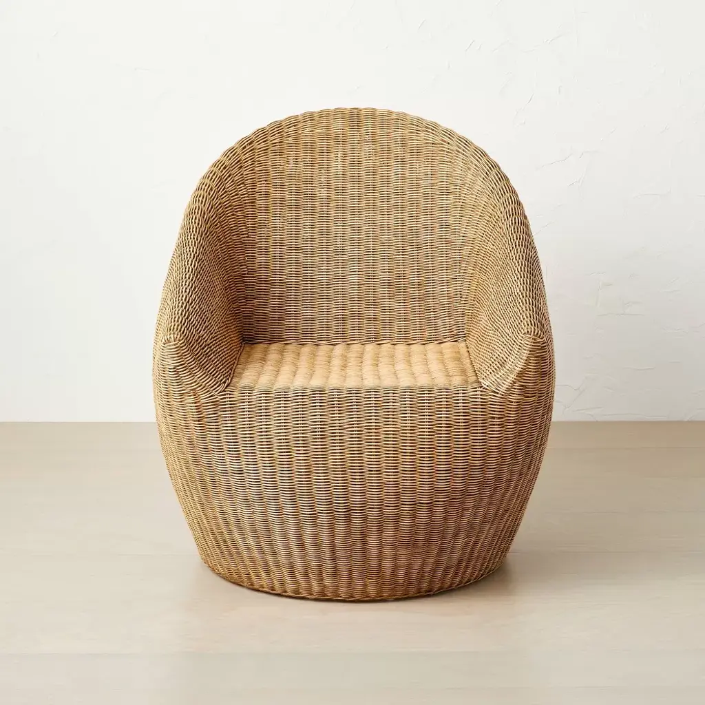 Add simple yet elegant style to your home with the Estero Wicker Accent Chair from Opalhouse™ designed with Jungalow™. Woven with a rattan frame and a curved back for an egg-like shape, this wicker accent chair with arms brings texture and style to any space of your home. The natural brown color makes it suitable for a variety of rooms and decor schemes, whether you add it in your living room or place in a corner of your entryway. Simply add a cushion or a throw blanket to create a comfy spot for relaxing, refreshing yourself with a cup of tea or reading.