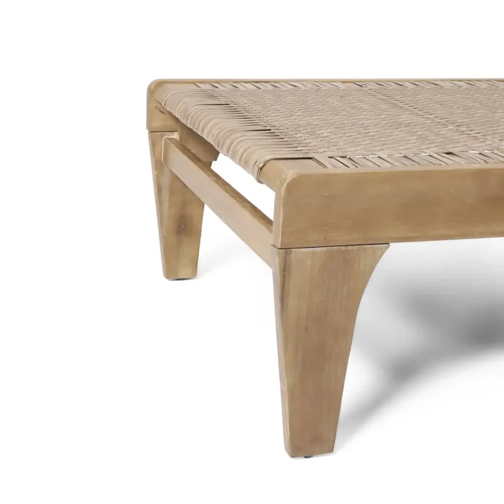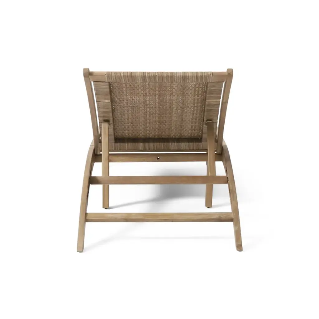 Relax poolside or soak up the sun on your deck with this outdoor chaise lounge chair. With a curved silhouette and a reclining back, you have the perfect place to unwind in your backyard. It has an acacia wood frame, while the seat and back are lined in a wicker material for a breezy touch. This chair can accommodate up to 300 lbs., so it's ready to keep you comfy as you enjoy carefree summer days.