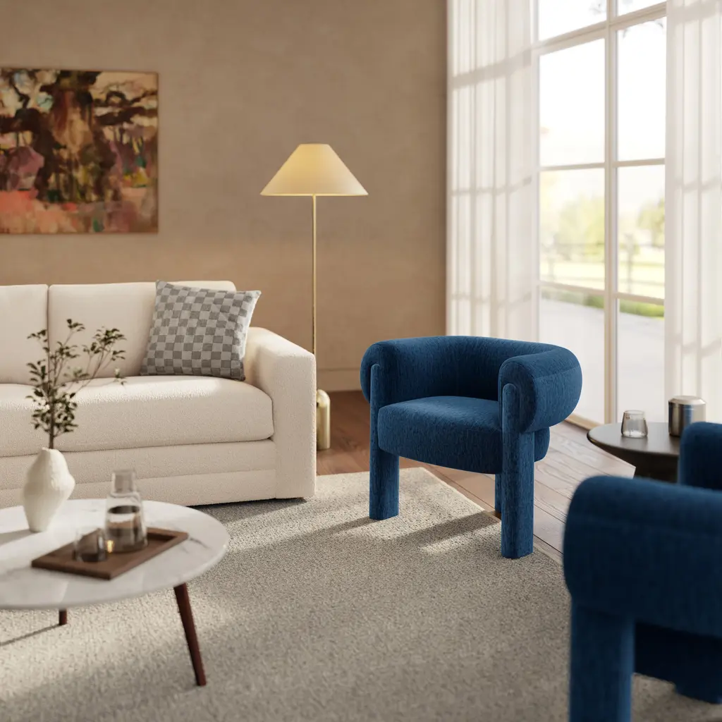 Eye candy for your living room, bedroom, walk-in closet, or wherever you need a statement piece. And what a piece the Everse is. For starters, it only has three legs — we know, wild, right? How did we do it? We'll never tell. But we can tell you it's not all about looks. The Everse's foam-padded curved armrest and cozy upholstery also make for one seriously stylish embrace.