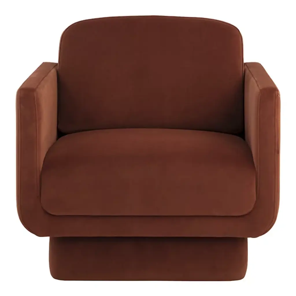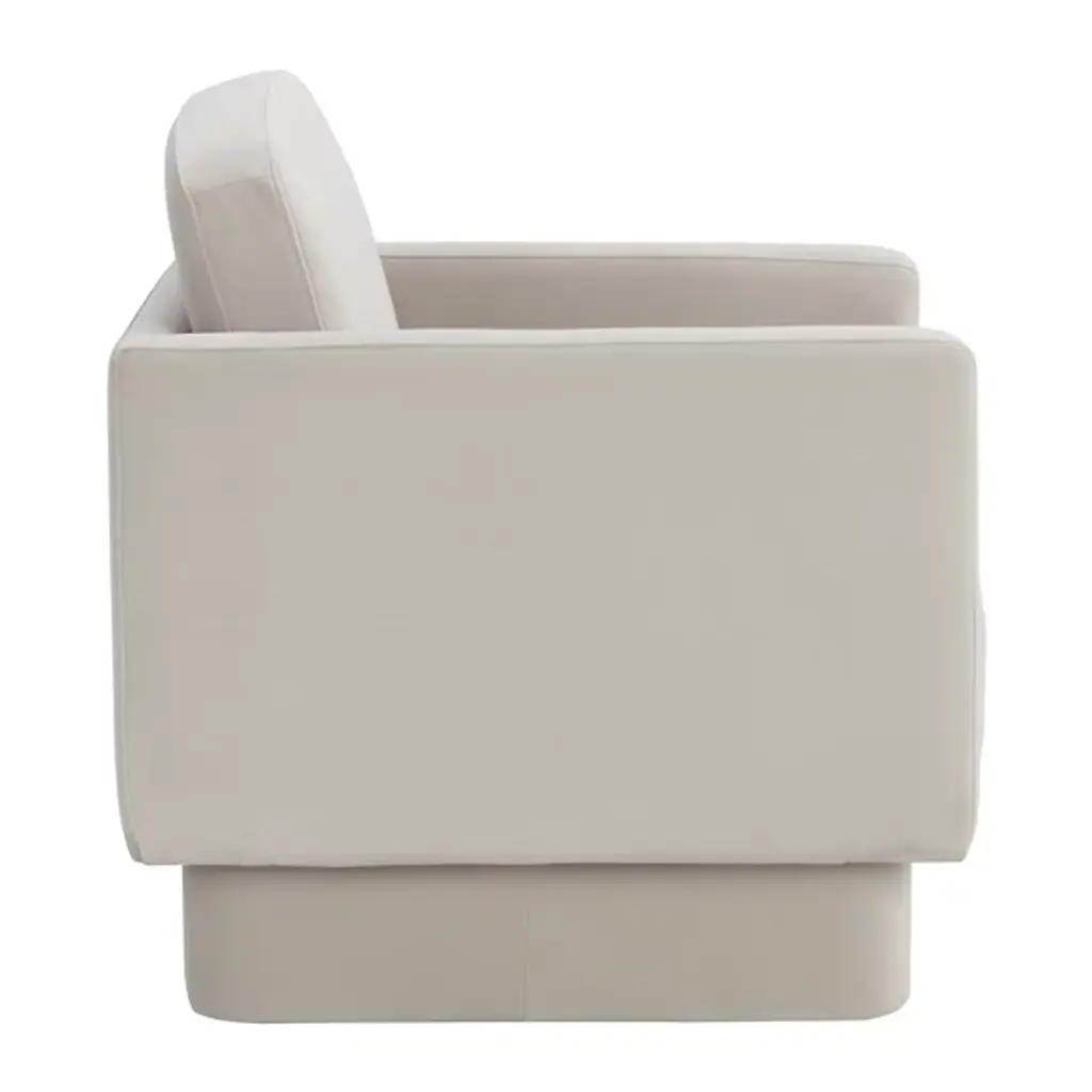 The Everton Lounge Chair from Sunpan refines modern comfort with its remarkable blocky silhouette. U-shaped arms with rounded edges rest on a square base, creating a floating effect that enhances its contemporary appeal. Fully upholstered in smooth fabric, this versatile chair offers plush polyurethane foam cushioning for ultimate relaxation. This seat matches mid-century modern influences with the simplicity of contemporary style, making it a comfortable, memorable addition to any space.