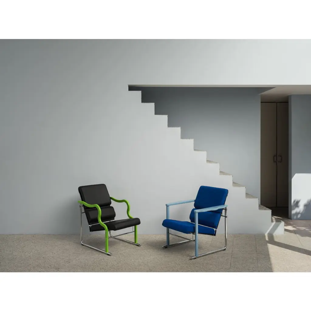 Hem's Experiment lounge chair is based on a collection originally designed by Yrjö Kukkapuro for Avarte. Kukkapuro created the Experiment series in the 1980s during the rise of postmodernism as he shifted toward a more expressive design. The collection was first time introduced at the Milan Furniture Fair, where it achieved tremendous success – it was featured in dozens of magazines worldwide and marked the pinnacle of Professor Kukkapuro’s career. Now, Hem has brought back this retro and nostalgic piece from the 1980s for all lovers of high-quality and playful design. The proportions of the Experiment lounge chair have been updated to meet the standards of today, but the overall design remains faithful to Kukkapuro’s original, with its undulating armrests and colorful details.