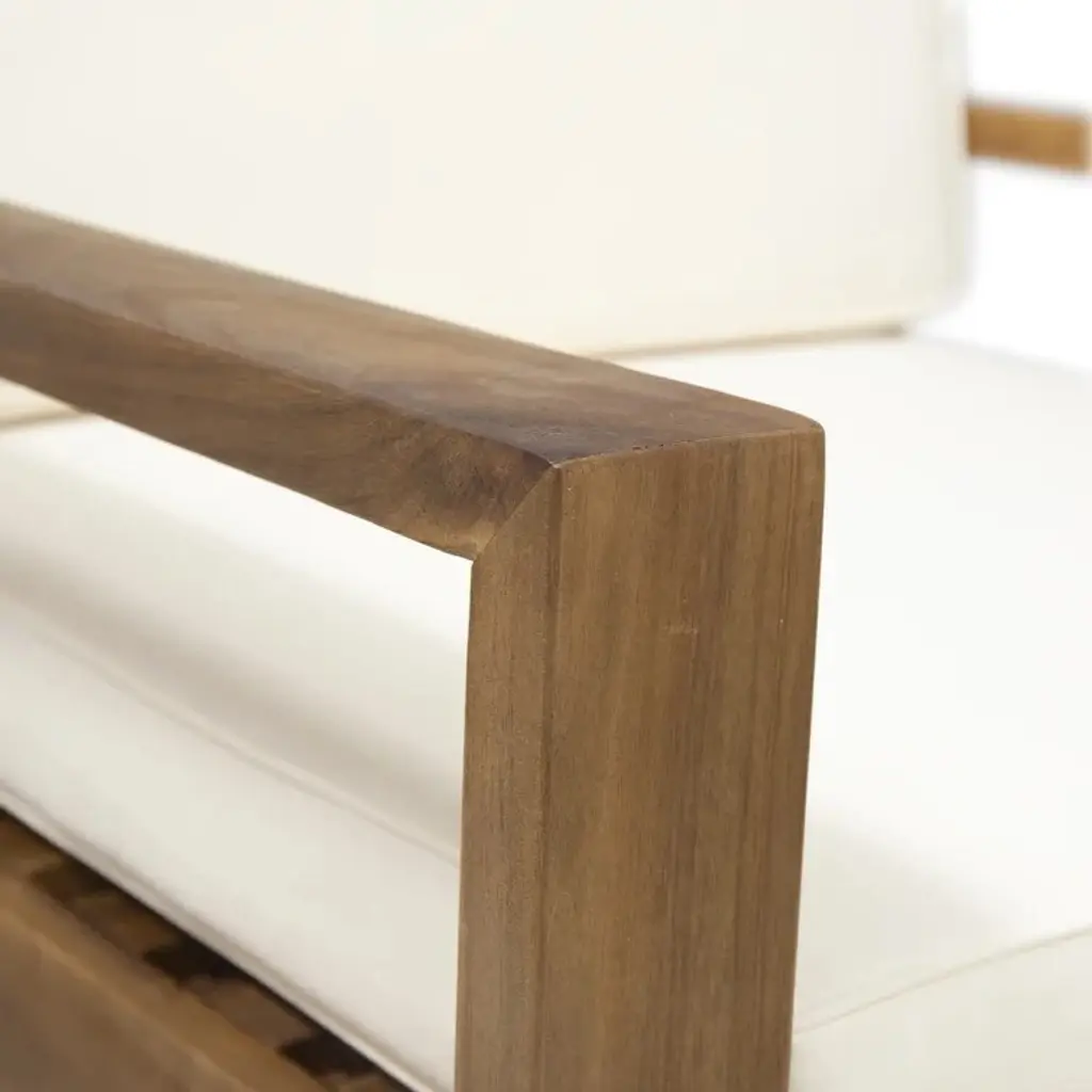 The Santa Ana Club Chair is a remarkable addition to your living space. Crafted with acacia wood, it offers both durability and an exotic charm. The wire brushed finish adds a unique texture, enhancing its visual appeal. The water-resistant cushions make cleaning effortless, ensuring a fresh look at all times. The slat paneling gives it a sophisticated and classic touch, while the bold frame completes the stylish look. It's a chair that combines functionality and aesthetics, providing a comfortable seating experience and adding elegance to your home.