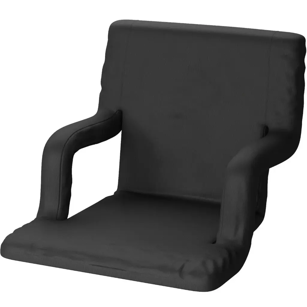 Whether you're off to the big game, your favorite campsite, or a day at the beach you will always have a comfortable place to sit with this extra wide portable reclining stadium chair. Boasting 6 reclining positions, dual storage pockets, a thick cushion, and the ability to be used with or without armrests, this must have indoor/outdoor chair meets your every seating need. When you're done for the day, simply lay the chair flat and use the adjustable backpack straps to free up your hands while you take the chair with you to the car, RV, or into the house. The slim profile makes vertical or horizontal storage a breeze. Premium, long-lasting materials ensure this multifunctional reclining chair is strong and reliable. The 24 gauge metal frame is strong, but lightweight for carrying and the heavy duty polyester fabric back and seat are coated for water resistance. The reinforced non-slip underside provides additional grip to prevent sliding for a worry free seating experience while bottom straps snap into place to securely attach yourself to the bleachers while you cheer for your favorite team. Use this versatile outdoor chair as alternative seating for outdoor learning during nice weather. Recommended for upper elementary through college age students, this handy, portable chair is ideal for the playground or the quad on campus. A slim profile makes vertical or horizontal storage a breeze and best of all, no assembly is required for your new outdoor recliner. Wipe clean to maintain the looks of this backpack chair.