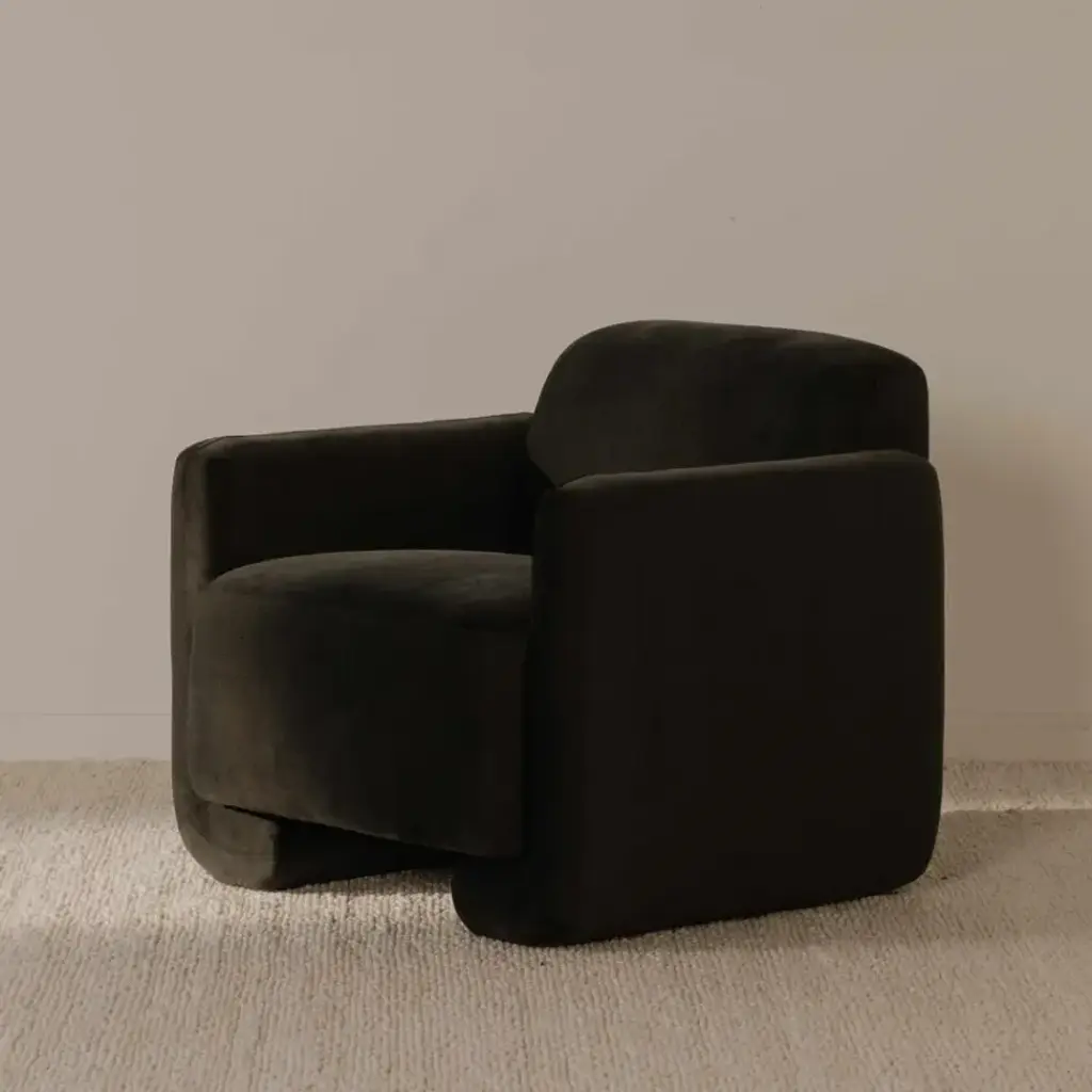 Contemporary and comforting, the Fallon accent chair features generous seating upholstered with soft-to-the-touch fabric, its texture adding an element of depth and dimension. Fold-under legs draw the gaze with its structural interest, making this sofa a stand-out piece in any living space.