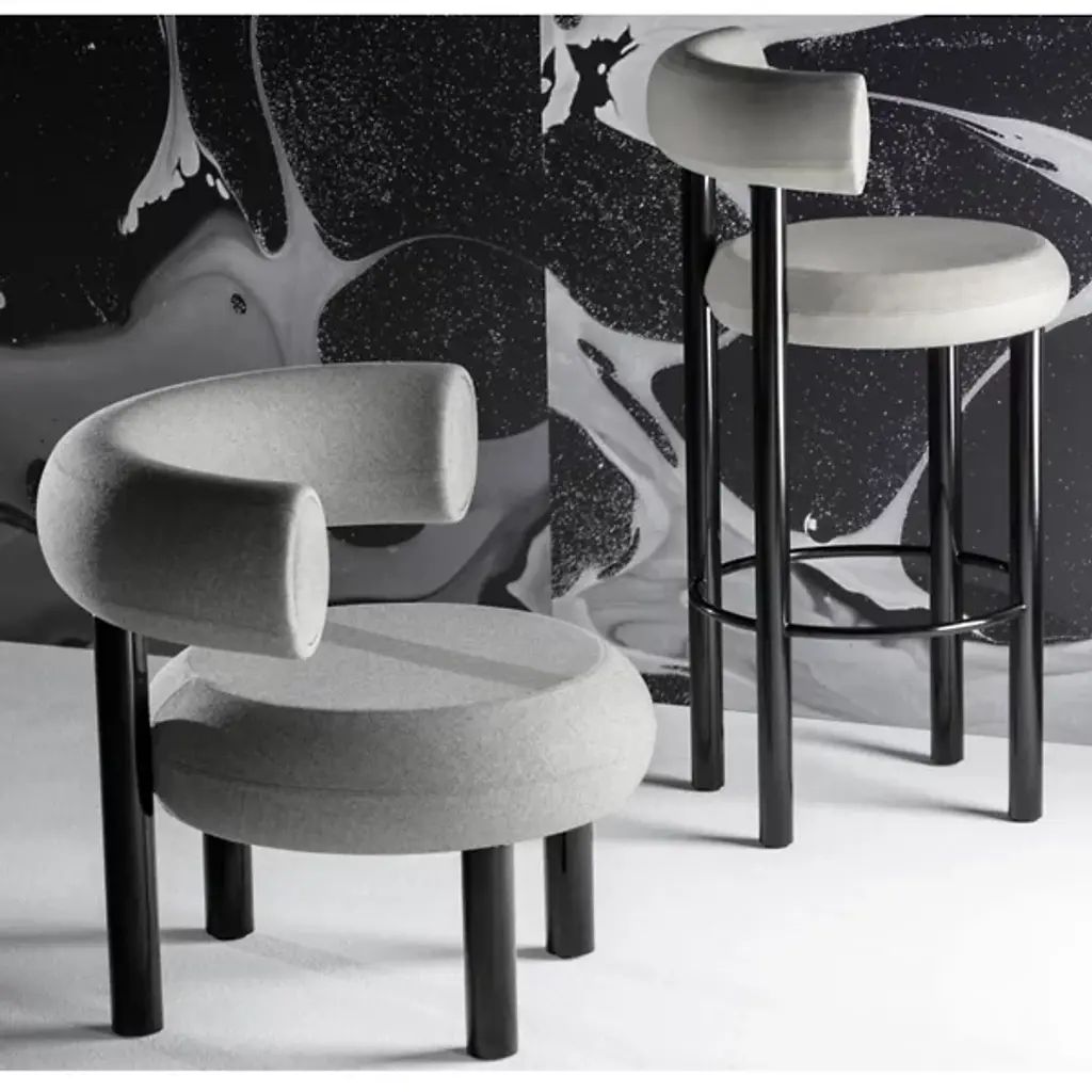Enhance your indoor living areas with the appealing lines and open design of the Fat Lounge Chair from Tom Dixon. An array of glossy metal cylinders functions as the support structure for a molded foam seat and curving, cylindrical back, elegantly finished by European artisans for a signature style. This contrasting arrangement of matte fabric and shiny metal creates an appealing designer spirit that blends expertly with a range of décor styles.