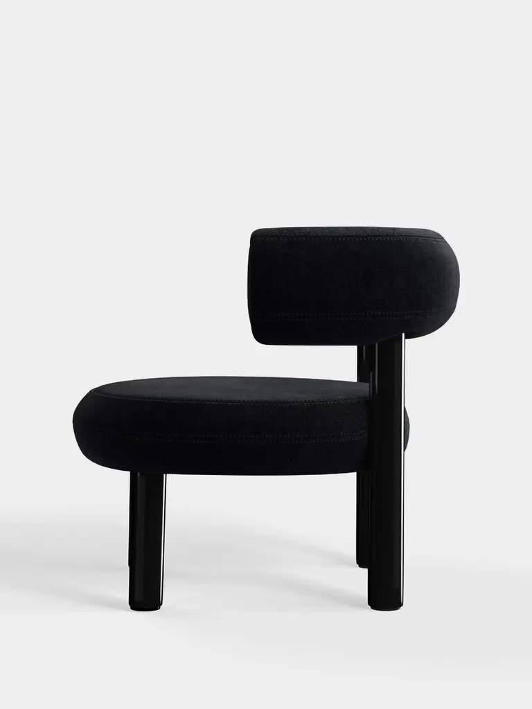 Fat Lounge Chair | Polished Black Steel & Black Kvadrat Gentle Velvet | Tom Dixon