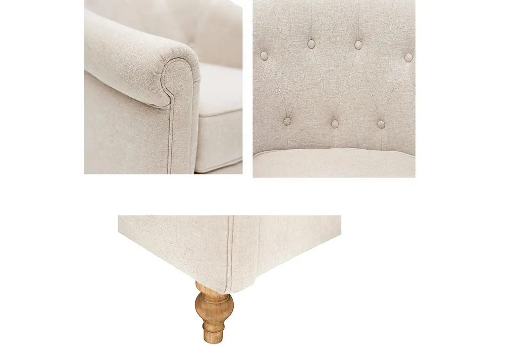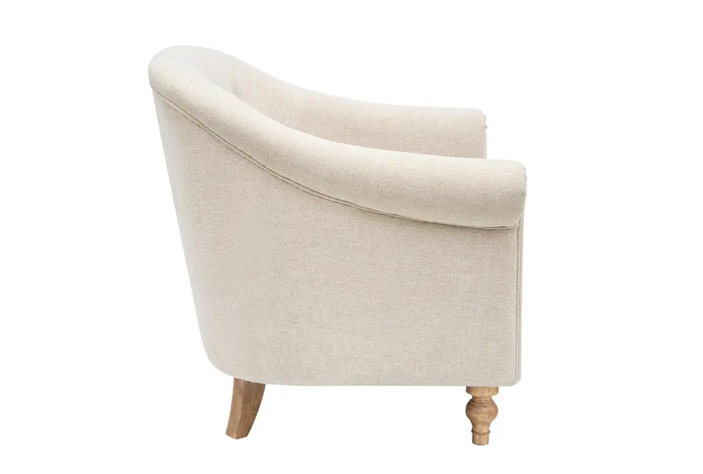 The Fayette Cream White Tufted Accent Barrel Fabric Arm Chair brings a touch of traditional elegance to any room. Inspired by Martha Stewart's home in Bedford, New York, this chair features classic rolled arms, button tufting, and turned front legs. Its firm comfort level and durable construction ensure it will be a lasting addition to your home. This design is the perfect bedroom chair, reading chair, club chair or accent chair for living room.