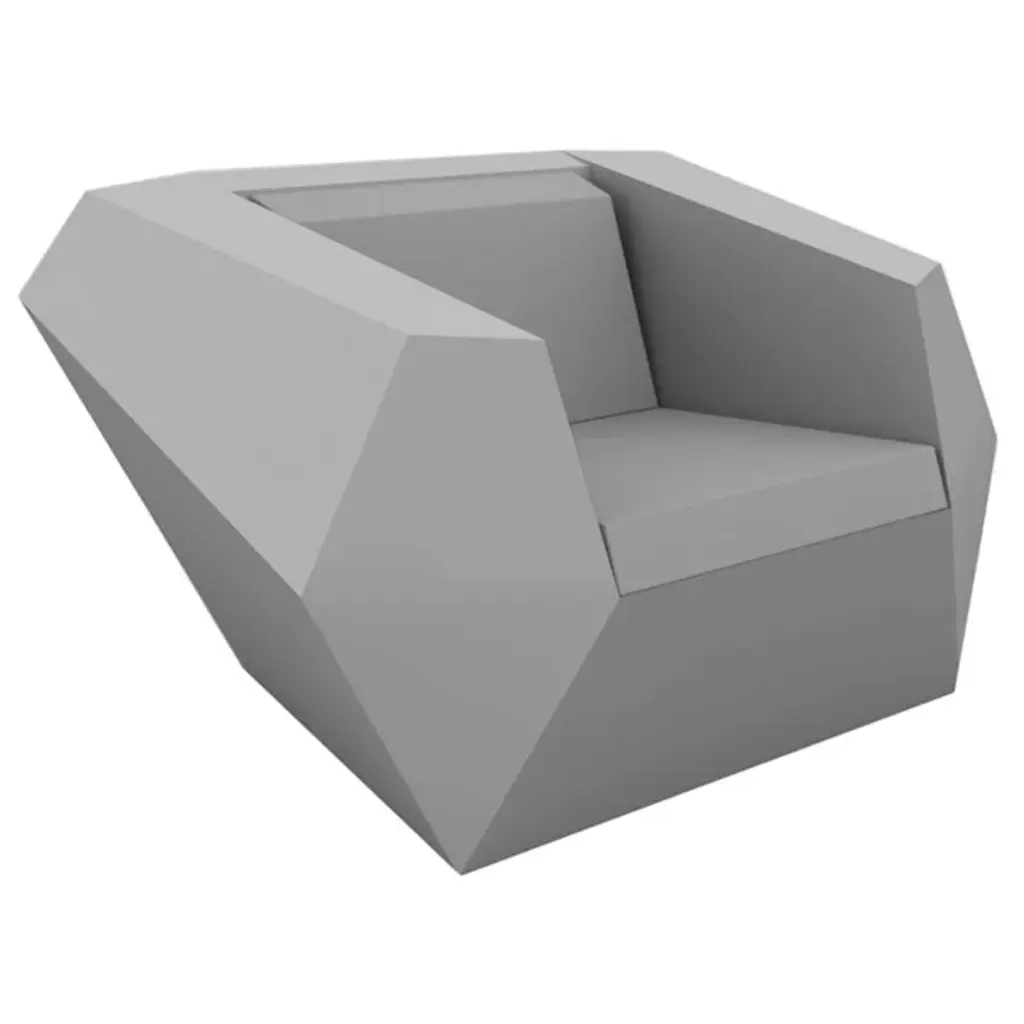 The Vondom Faz Lounge Chair is destined to be the crown jewel of your outdoor lounging area. The design is so sharply realized that it feels like you're sitting in a hewn stone instead of molded polyethylene. That hard, sharp impression is belied somewhat by the smooth (and weather-resistant) vinyl upholstery on the seat and back cushions. Also suitable for indoor use.