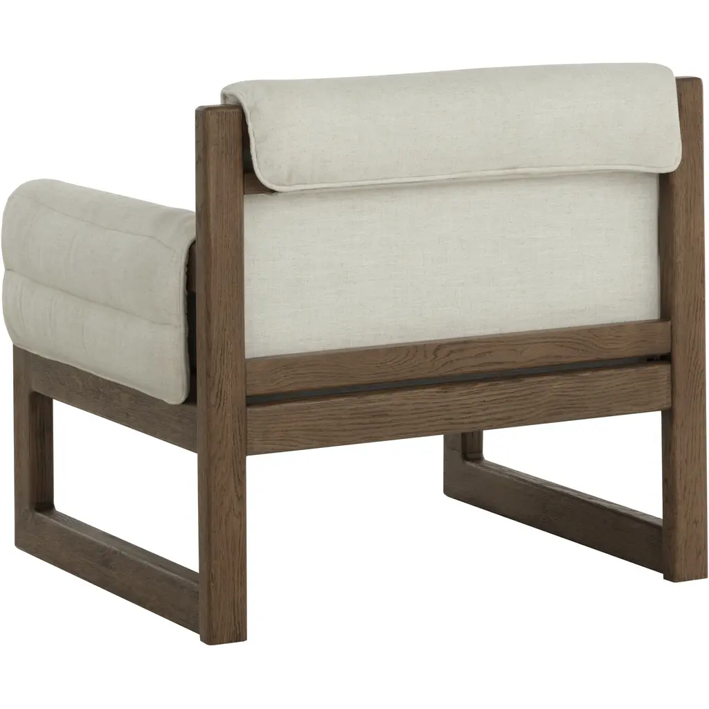 Beautiful and stylish, the Ferguson Lounge Chair is sure to impress. Nestled within a warm brown oak wood frame are channel tufted cushions upholstered in geralt linen performance fabric, making the most of its lavish yet cozy appearance. Matching channel tufted padding wraps over the armrests to embrace guests in a beacon of luxurious comfort.