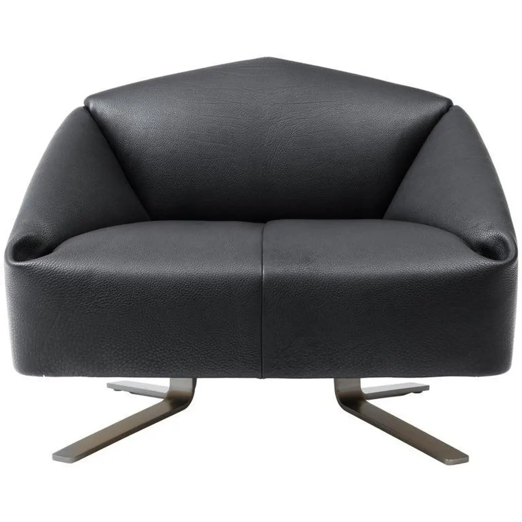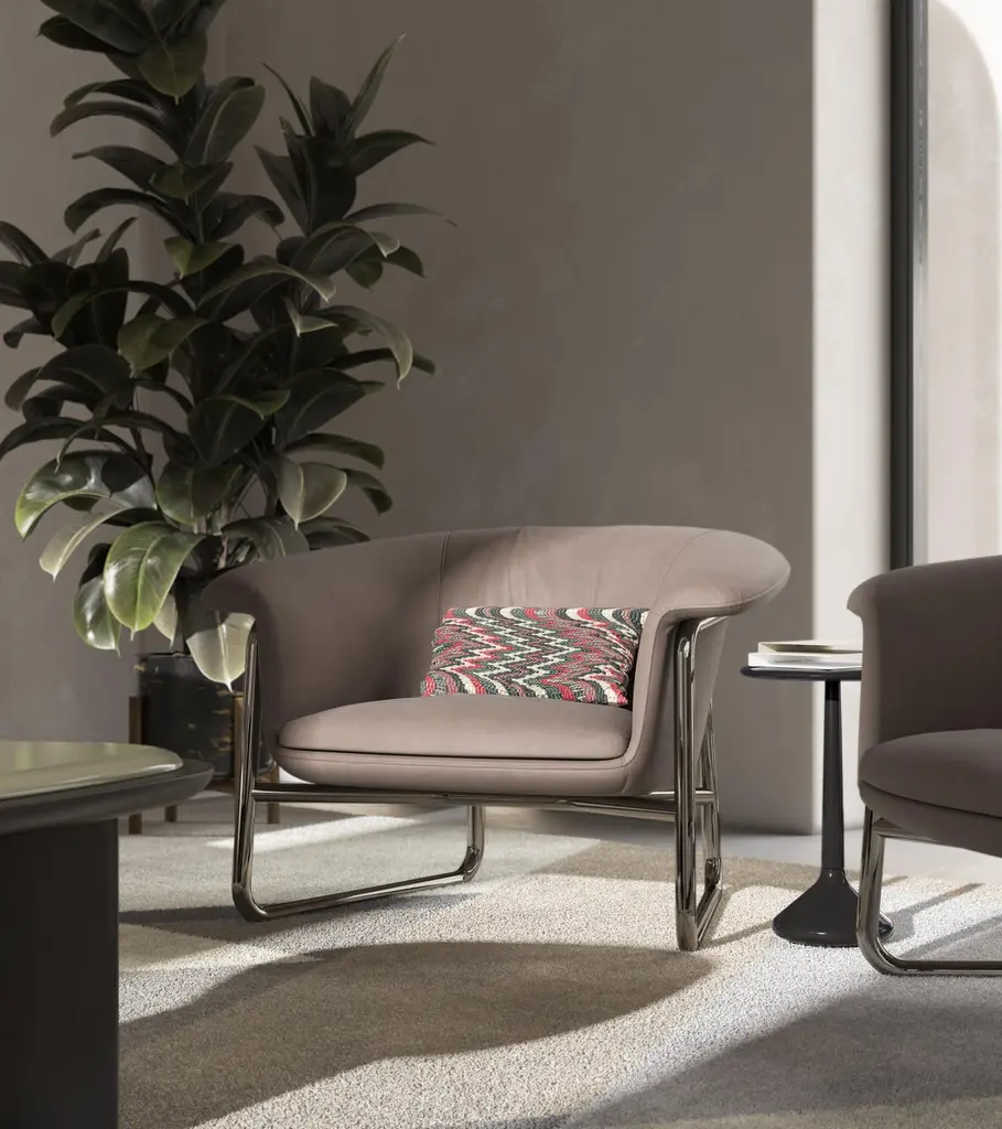 A stylish and versatile armchair, this piece features a sturdy metal frame that provides both durability and a sleek, contemporary look. The seat and backrest are upholstered in either premium leather or high-quality fabric, offering comfort and a touch of elegance. Designed with clean lines and a balanced silhouette, this armchair seamlessly blends modern aesthetic with timeless appeal. Whether in a living room, office, or lounge area, its combination of metal structure and soft upholstery creates a perfect balance between sophistication and comfort.