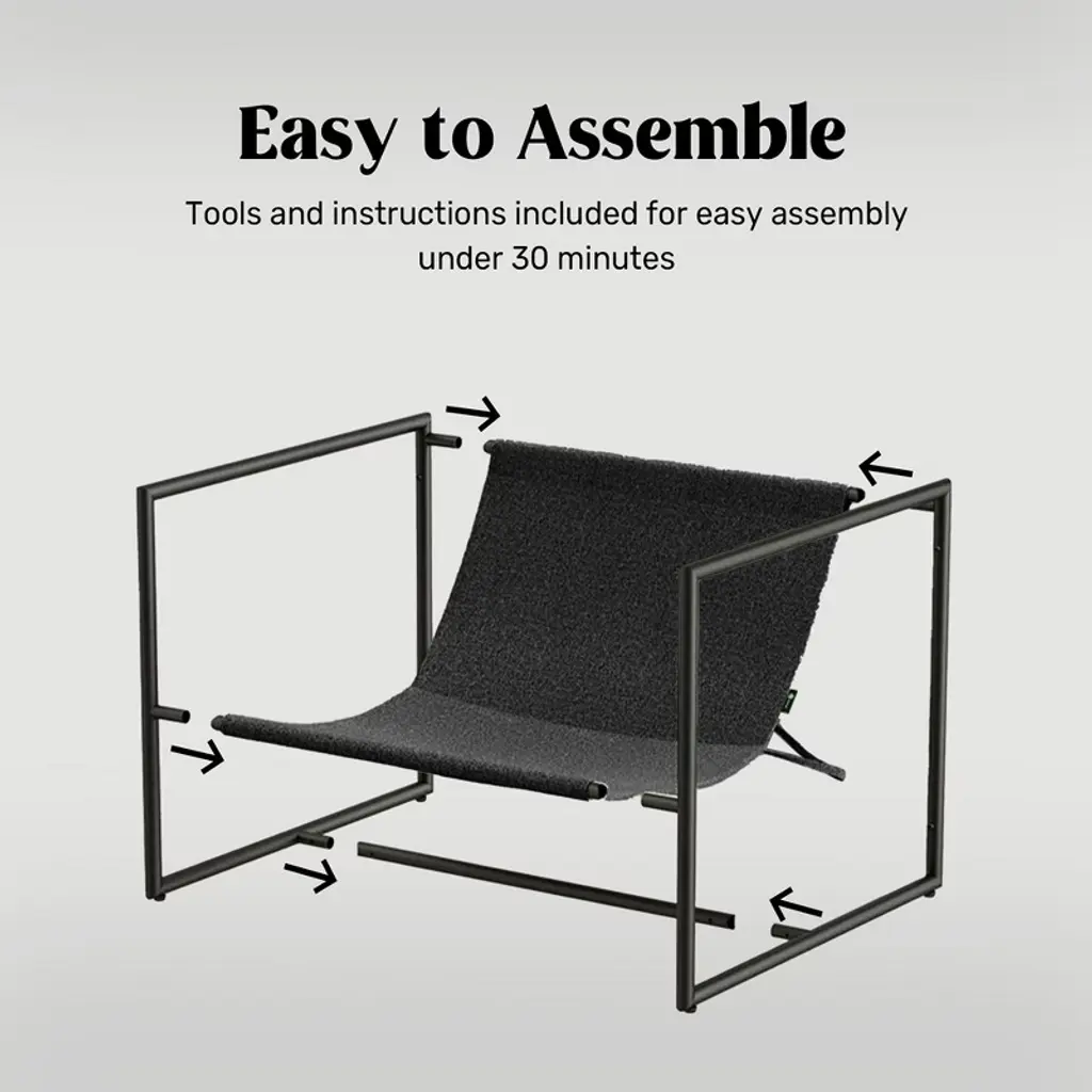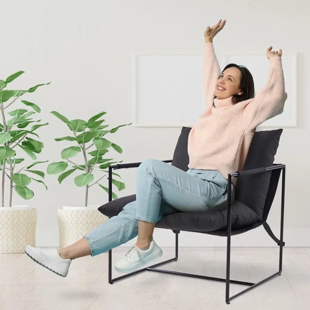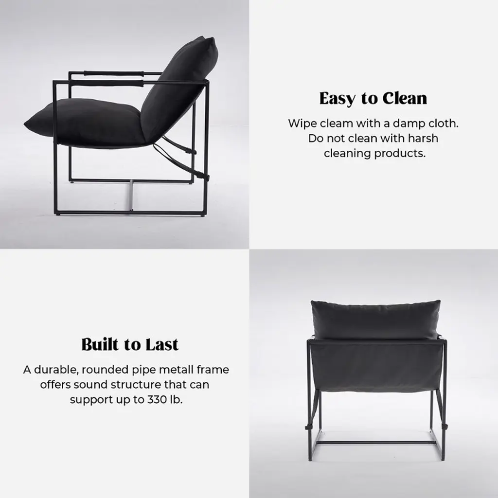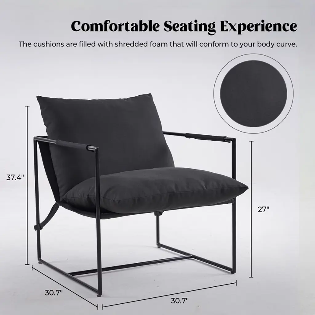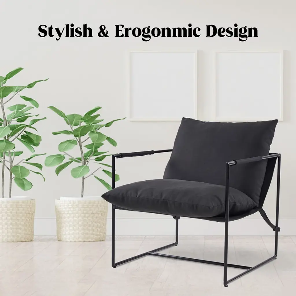 Ferpit Upholstered Sling Accent Chair With Metal Frame Modern Style, Black