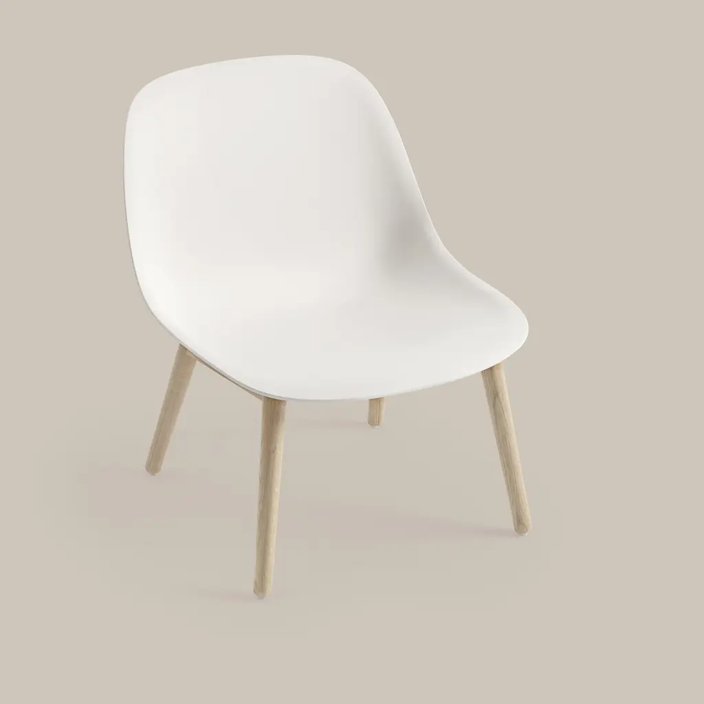 A sustainable composite shell and a solid wood base finished with an environmentally-friendly water-based lacquer make for a apt pairing in this lounge chair version of Muuto's signature Fiber seating. The brainchild of Copenhagen designers Iskos-Berlin, the molded seat is made from an innovative amalgam of plastic and wood fibers with a textured matte surface and soft, inviting touch. With its generous proportions and low stance, the chair offers unconstrained ease —along with an inviting appearance in either matte Nordic-influenced hues or with the base in a contrasting natural oak finish.