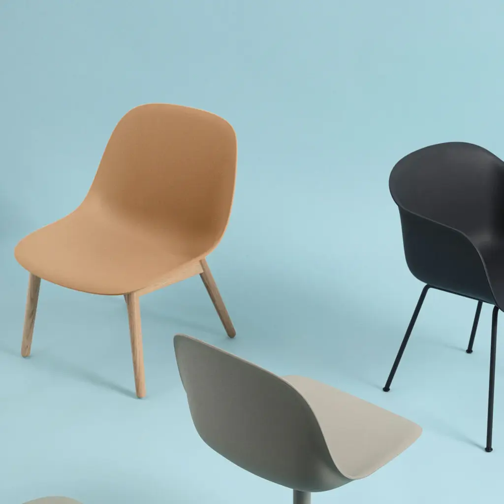 A sustainable composite shell and a solid wood base finished with an environmentally-friendly water-based lacquer make for a apt pairing in this lounge chair version of Muuto's signature Fiber seating. The brainchild of Copenhagen designers Iskos-Berlin, the molded seat is made from an innovative amalgam of plastic and wood fibers with a textured matte surface and soft, inviting touch. With its generous proportions and low stance, the chair offers unconstrained ease —along with an inviting appearance in either matte Nordic-influenced hues or with the base in a contrasting natural oak finish.