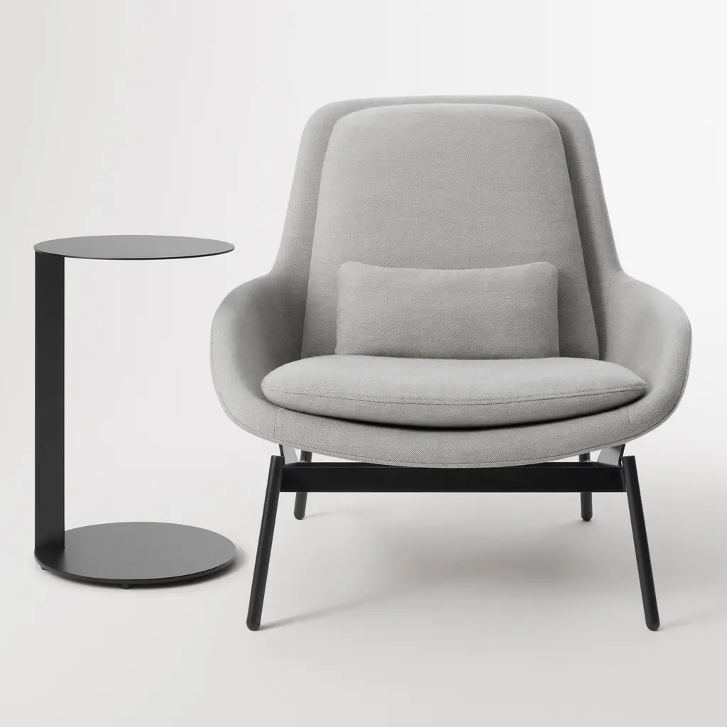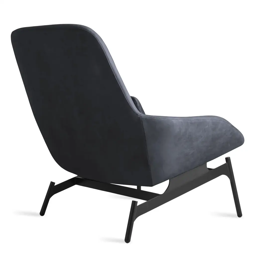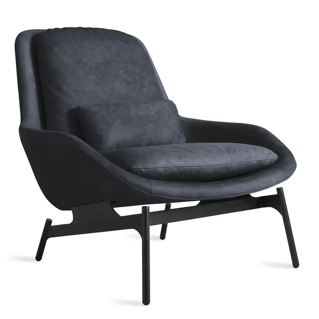Shapely curves, a gentle recline and “just-right” cushions invite the lost art of unwinding. A sculptural powder-coated steel base sets up the striking profile. Field Ottoman also available.