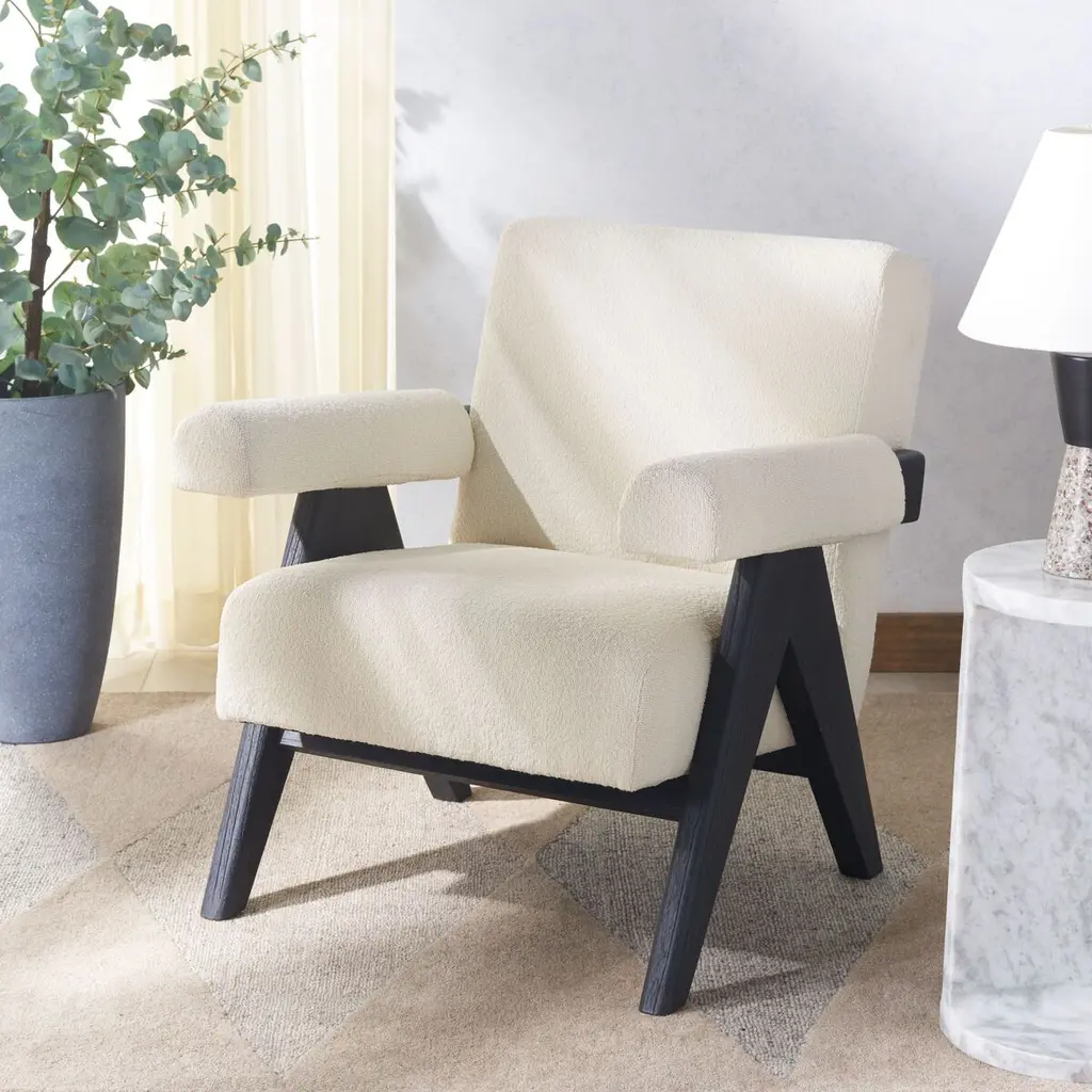 Embrace the charming aura and comfort of our upholstered accent chair. Combining a clean-lined frame with plush upholstery, the accent chair remains a sleek and inviting addition to your home. The chair offers a distinctly modern silhouette with its angular legs. Crafted from quality wood, the frame beautifully complements the rich upholstery of the chair. It features padded arms and a subtle recline in the back and seat to offer a comfortable and inviting place to land in your living room, home office, or bedroom.