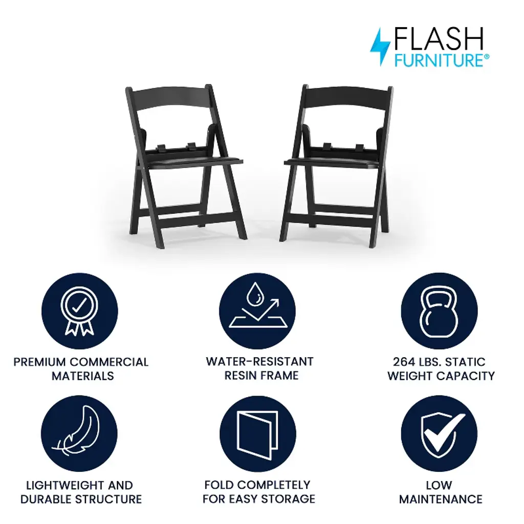 Flash Furniture Hercules Set Of 2 Kids Black Resin Folding Chairs With Black Vinyl Padded Seat