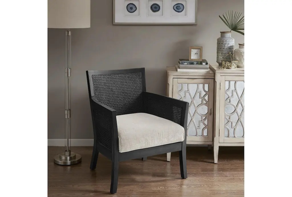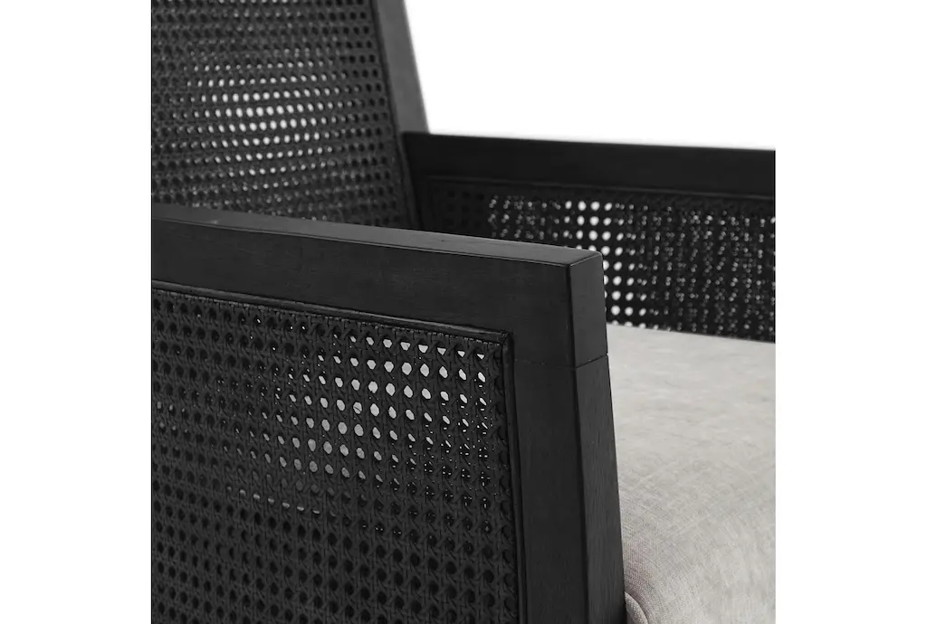 Fleming Black Fabric/wood Cane Accent Arm Chair | Solid | Lounge