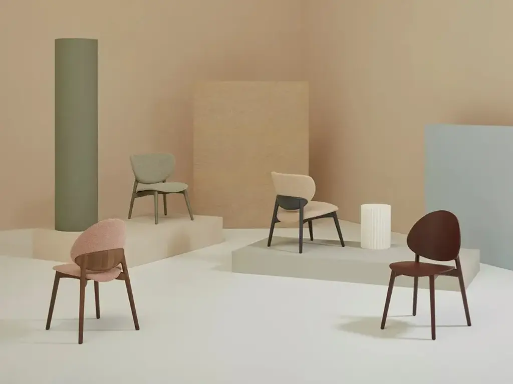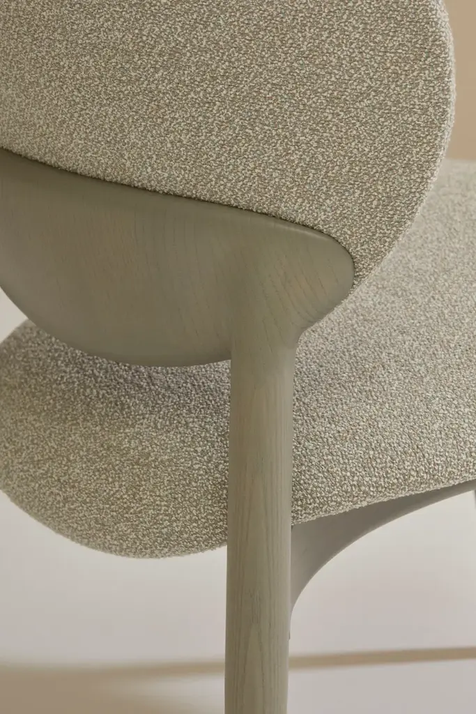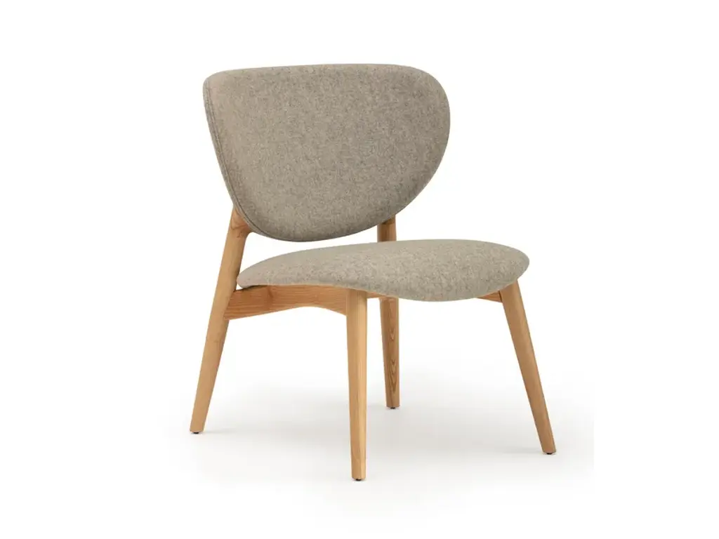 Fleuron 203 is an armchair with a solid ash wood frame and padded seat/backrest.Fleuron is a collection designed by Constance Guisset, now enriched with a lounge seat made comfortable by its wide backrest and more generous dimensions.Like the chair, its distinctive feature is the craftsmanship at the back, where the harmonious junction between frame and backrest is highlighted by contrasting colors or finishes. In the lounge chair, both seat and backrest are upholstered.