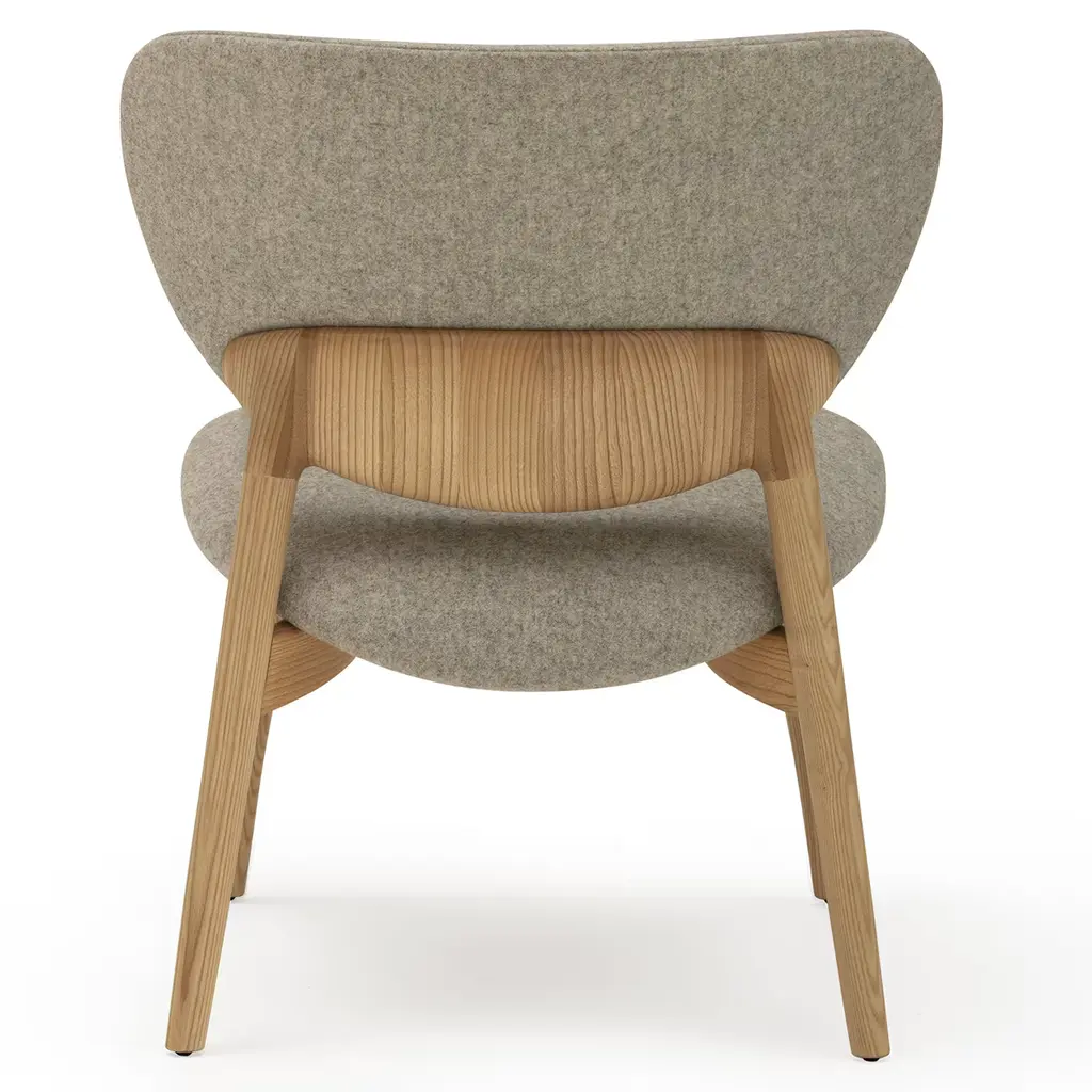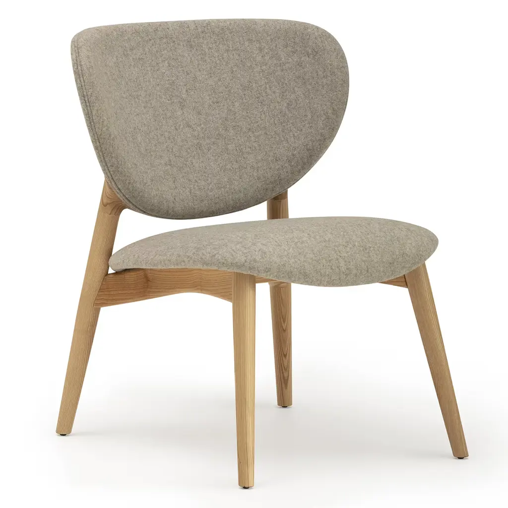 Simple and dynamic lines easily underline the versatile character of this lounge chair, equally ideal for suiting residential or professional contexts, alike. Padded and covered in gray Flamenco (0897) fabric, both the shaped backrest and seat are held in place thanks to the tapered elements composing the natural ash structure. Different versions are available in the Artemest catalog.