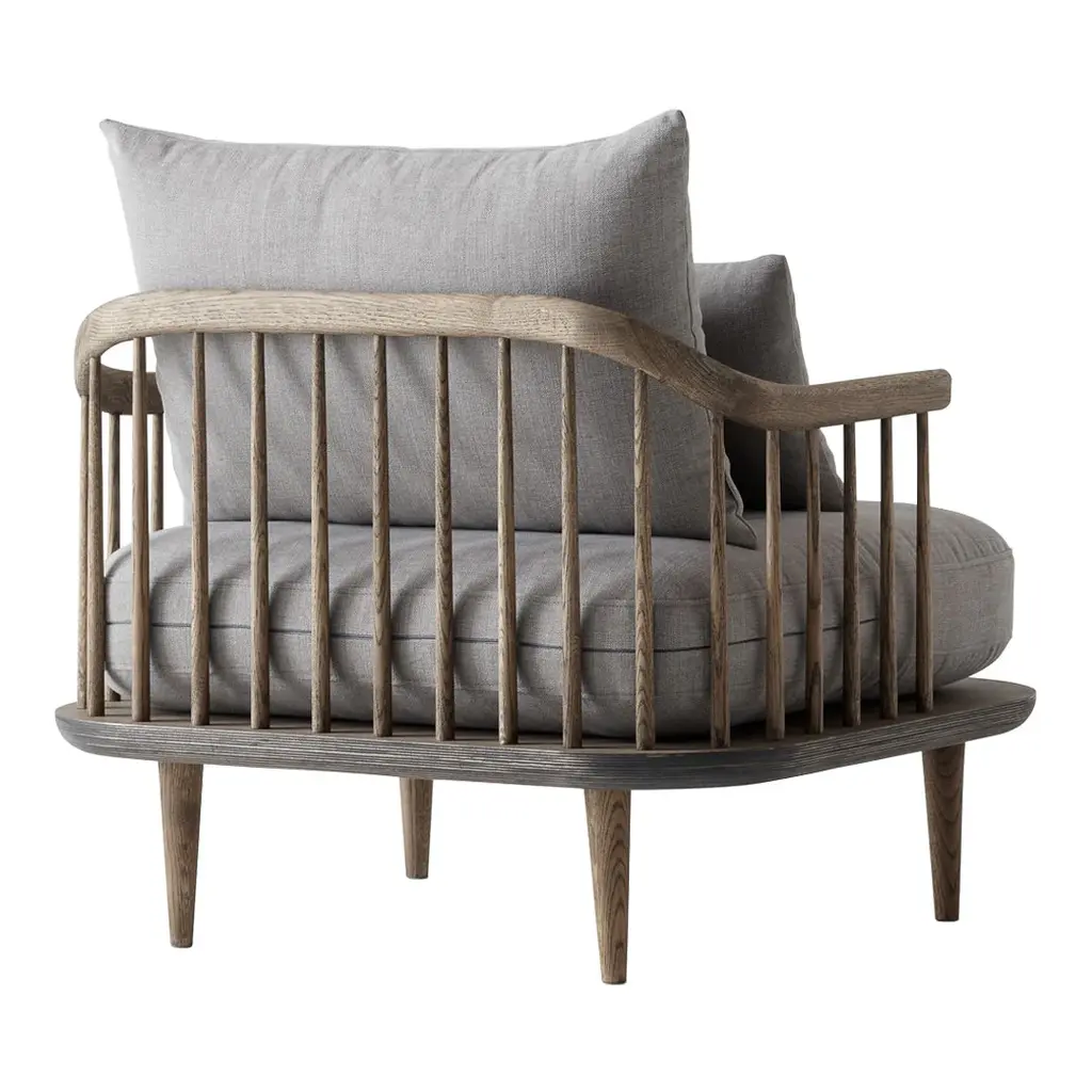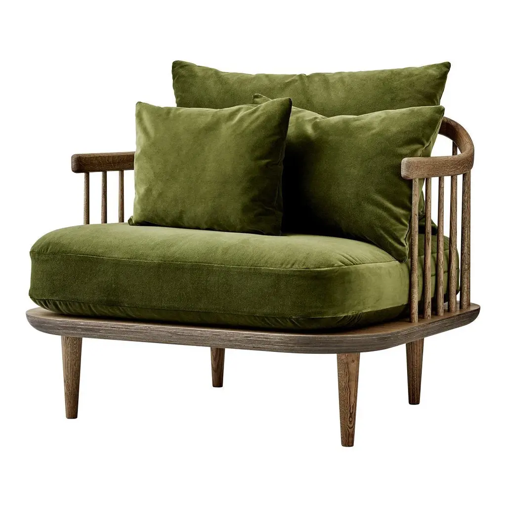 The &Tradition FLY SC1 Lounge Chair, masterfully conceived by Space Copenhagen, redefines traditional Scandinavian seating by prioritizing absolute freedom of relaxation. This sophisticated piece marries classical Nordic woodworking techniques with contemporary comfort innovations, creating a lounge chair that adapts to the sitter rather than dictating posture. At the heart of the design is a meticulously handcrafted frame of solid oak, available in either white oiled or smoked oiled finish, featuring a thoughtfully slatted backrest that pays homage to traditional Danish furniture craftsmanship. The chair's organic silhouette (34.3" W x 31.5" D x 27" H) creates an inviting presence while maintaining a light, sculptural aesthetic that complements modern interiors. What truly sets the FLY SC1 apart is its innovative approach to comfort customization. The chair's loose back cushions, constructed from high-resilience foam and feather fill, can be freely arranged to support various lounging positions. This adaptability, combined with the precisely calibrated seat height of 15.7 inches and depth of 21.3 inches, creates an exceptionally versatile seating experience. Each FLY SC1 represents Space Copenhagen's commitment to balancing aesthetic refinement with practical comfort. Available in a carefully curated selection of upholstery options, this chair stands as a testament to &Tradition's mission of bridging historical craftsmanship with contemporary design sensibilities.