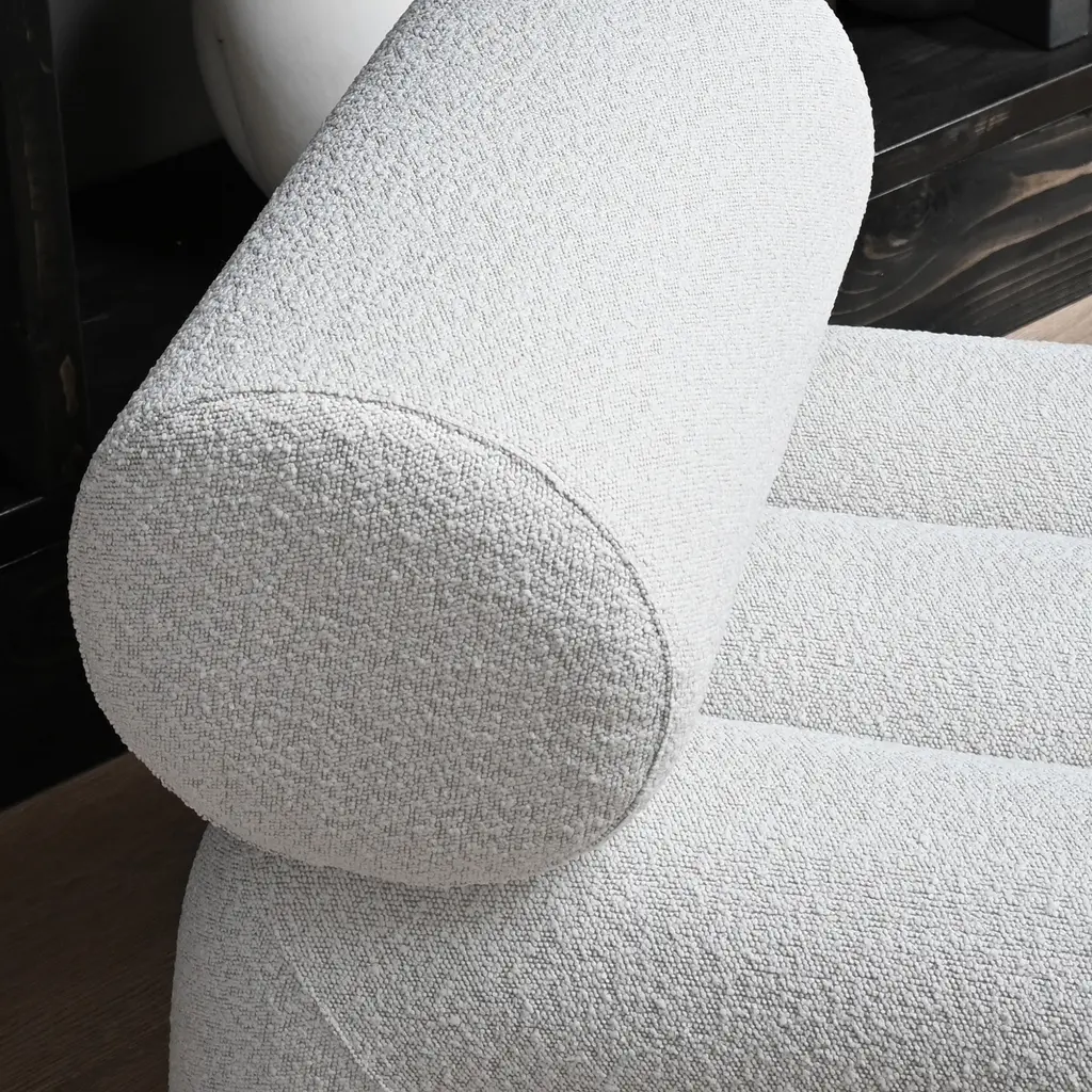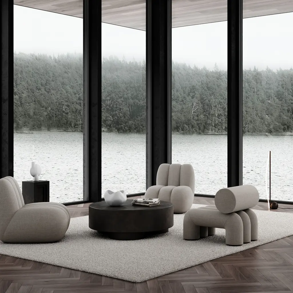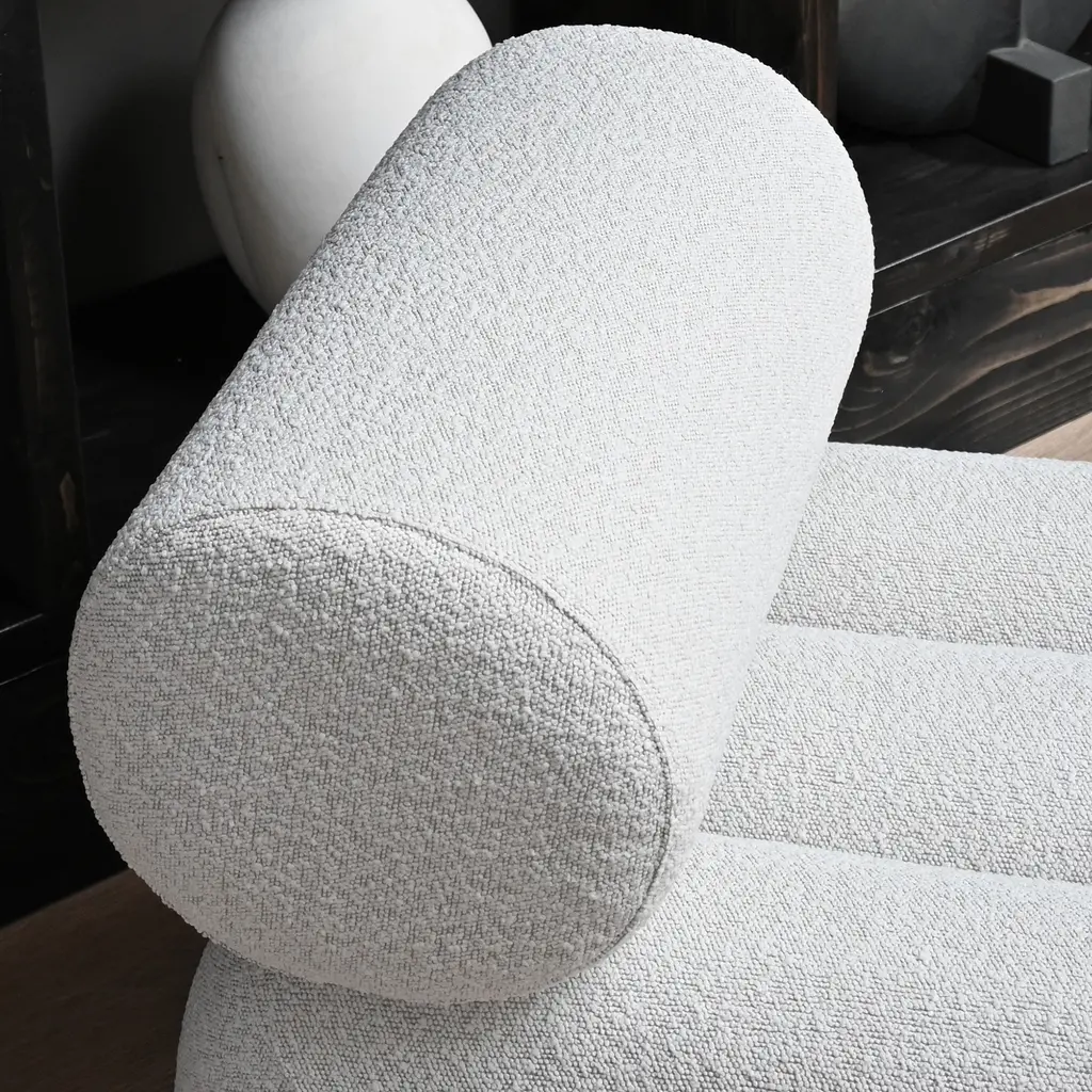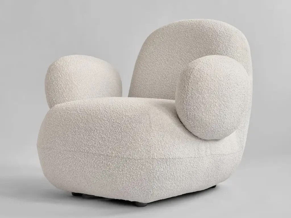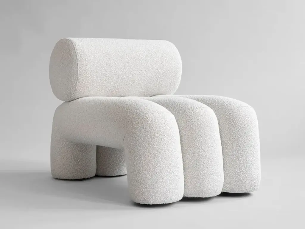 Inspired by Japanese Zen gardens, the 101 Copenhagen Foku modular lounge chair boasts thick, arched shapes that remind of the gardening tool used to draw perfect waves in the sand. The name also alludes to this source of inspiration, as Foku translates to “fork” in Japanese. Created by design duo Kristian Sofus Hansen & Tommy Hyldahl, this chair has a sculptural silhouette that maximizes both visual impact and comfort. Fully upholstered, Foku features plush foam padding that not only provides a supremely comfortable lounging experience, but also emphasizes the chair’s bold geometric forms. A modular lounge chair with metal brackets underneath the base, this design provides a convenient solution to attach several modules in a row to create a sofa. The 101 Copenhagen Foku Chair comes in two versions: one with a textured bouclé fabric for indoor spaces and the other with a water- and UV-resistant material that suits outdoor use.