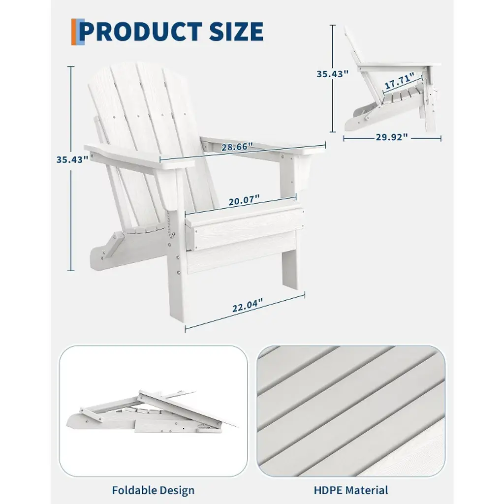 Folding Adirondack Chair Set of 1, HDPE All-Weather Patio Chairs, BackRest Wood Lounge Chair for Outdoor Patio Garden Lawn Backyard Deck Pool Beach Firepit
