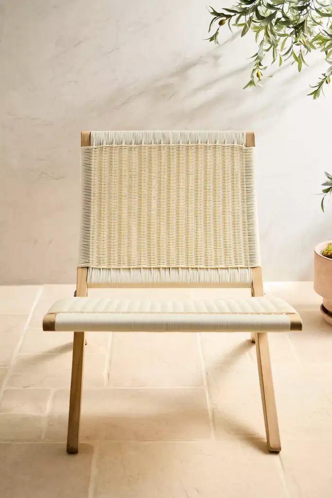 With a tight weave, deep seat, and slight slope, this woven rattan and teak chair is designed specifically with comfort in mind. Durable enough for any outdoor space but elegant enough to add to a casual living room or sun room. A folding construction makes for easy storage; perfect for extra guests or multi-use spaces.