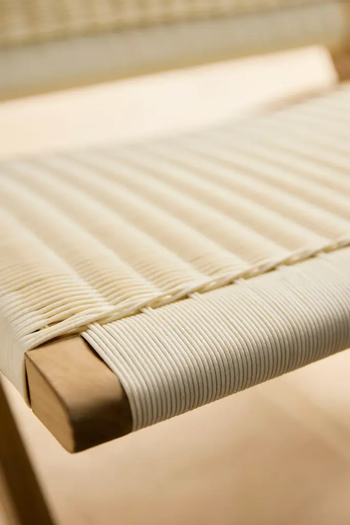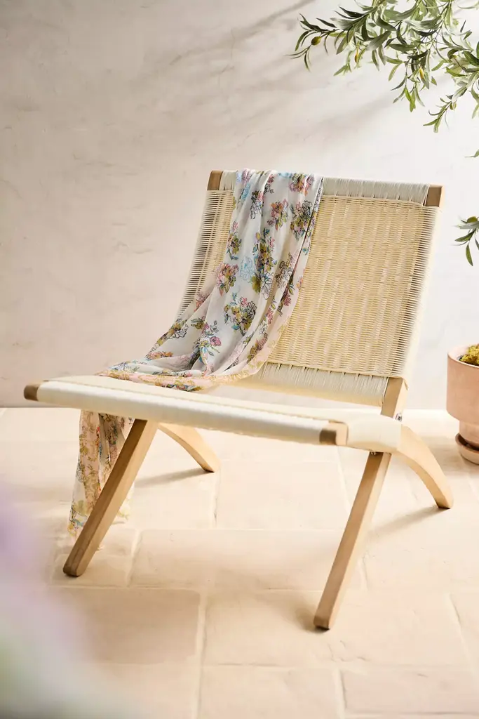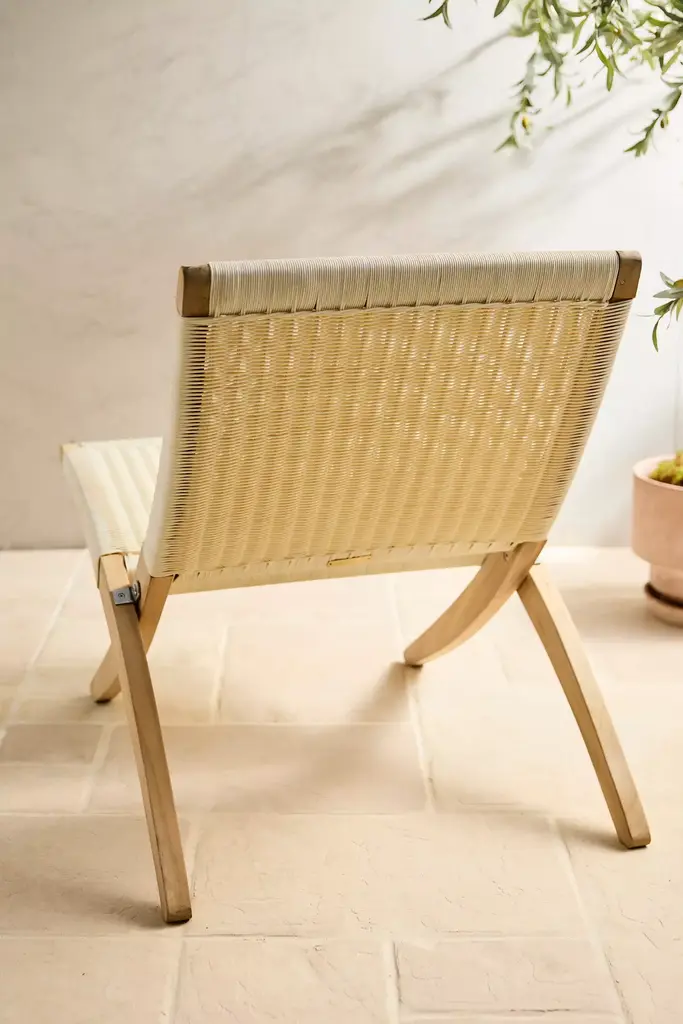 Folding Teak + Wicker Scissor Chair
