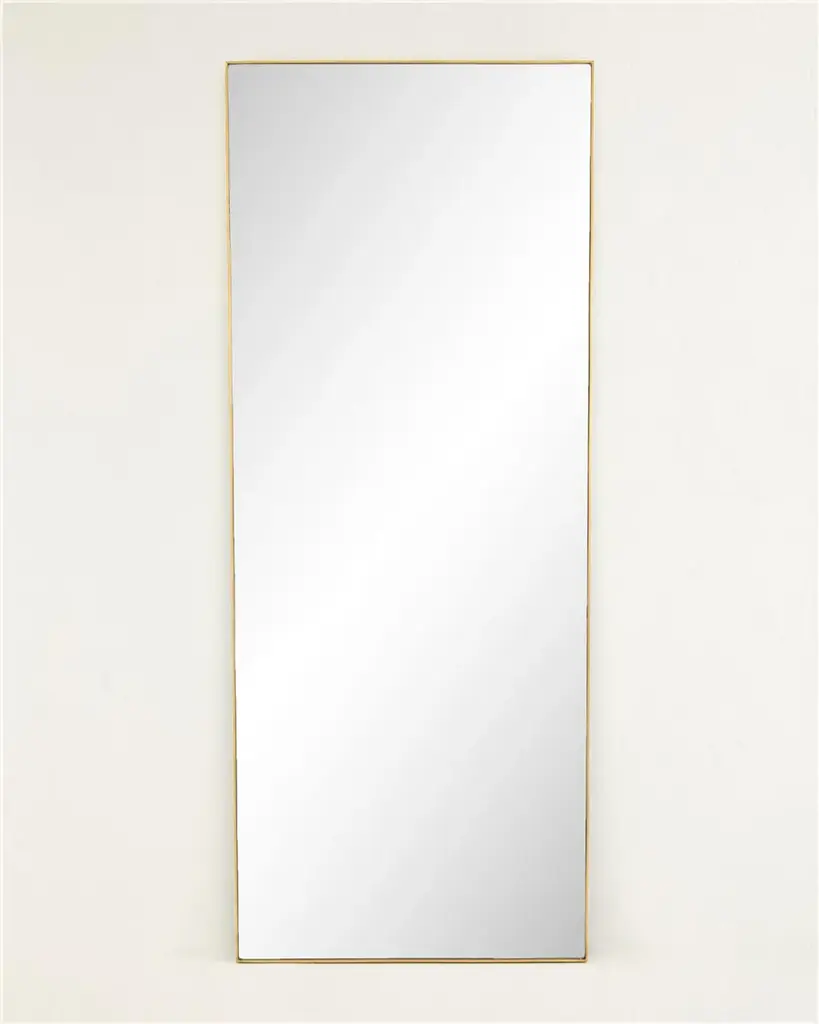 Floor mirror with stainless steel frame in gold finish. 32"W x 2"D x 80"T. Hanging hardware included. May be hung horizontal or vertical. Imported. Boxed weight, approximately 103.4 lbs. Shipping Direct from Vendor, usually ships within 10 business days. About Four Hands: Four Hands is a dynamic lifestyle brand that offers a diverse range of furniture and home decor items. With a focus on innovative design and quality craftsmanship, Four Hands creates pieces that blend modern aesthetics with traditional craftsmanship. From stylish sofas and chairs to unique accent pieces and accessories, each product is thoughtfully designed to inspire and elevate any living space. With a commitment to sustainability and ethical practices, Four Hands is dedicated to creating beautiful, functional, and responsibly made products for the modern home.