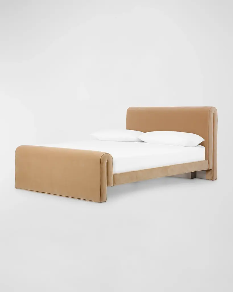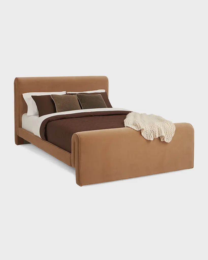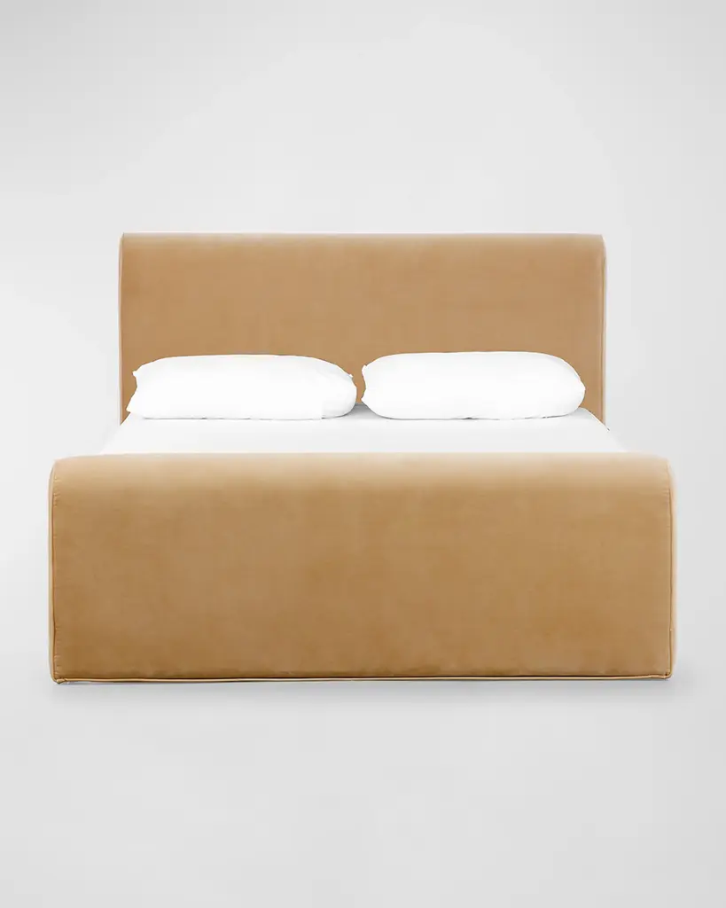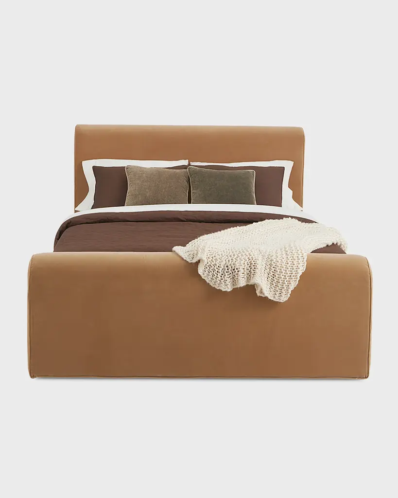 Folded cotton-blend fabric offers a trend-forward take on bedroom decor. Warm and versatile, camel hues blend easily into a range of colors and design styles. King bed is handmade of cotton, polyester, and hardwood Not compatible with an adjustable mattress Overall, approx. 81"W x 99"D x 44.3"T Distance between slats, approx. 3.3"W Includes hardware Assembly required Finished back Imported Ships in four boxes Weight, 215.0lbs Boxed weight, approximately 269.0lbs Shipping Direct from Vendor, usually ships within 124 business days. About Four Hands: Four Hands is a dynamic lifestyle brand that offers a diverse range of furniture and home decor items. With a focus on innovative design and quality craftsmanship, Four Hands creates pieces that blend modern aesthetics with traditional craftsmanship. From stylish sofas and chairs to unique accent pieces and accessories, each product is thoughtfully designed to inspire and elevate any living space. With a commitment to sustainability and ethical practices, Four Hands is dedicated to creating beautiful, functional, and responsibly made products for the modern home.