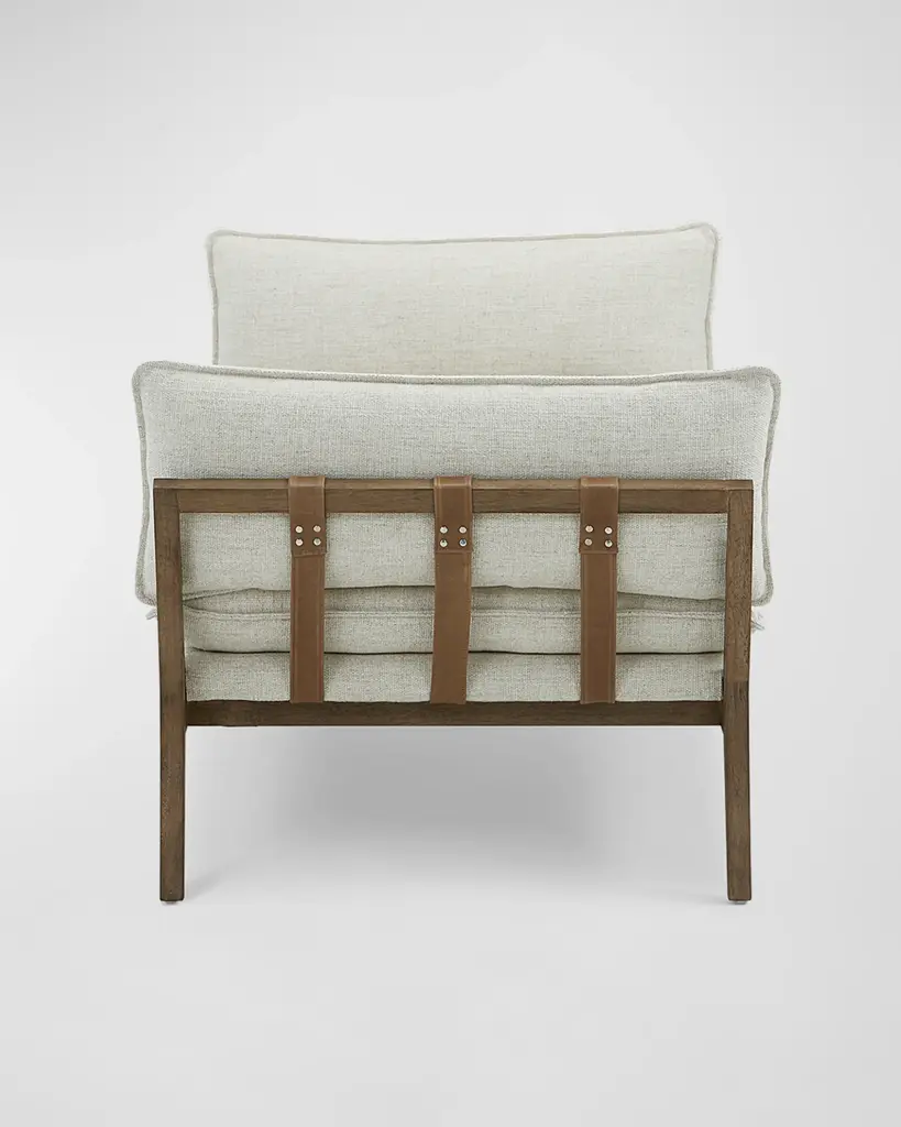 Made for stretching out or sinking in, cream-colored pillow top cushioning is cradled by a natural parawood frame, with taupe top-grain leather buckles lending an edgy finishing touch. Cushion fabric: polyester/acrylic/linen. Overall: 85"W x 35"D x 30"T. Side pillows: 35"W x 7"D" x 14"H. Seat cushion: 7"H. Dust with a dry, soft cloth. Imported. Boxed weight, approximately 120.8 lbs. About Four Hands: Four Hands is a dynamic lifestyle brand that offers a diverse range of furniture and home decor items. With a focus on innovative design and quality craftsmanship, Four Hands creates pieces that blend modern aesthetics with traditional craftsmanship. From stylish sofas and chairs to unique accent pieces and accessories, each product is thoughtfully designed to inspire and elevate any living space. With a commitment to sustainability and ethical practices, Four Hands is dedicated to creating beautiful, functional, and responsibly made products for the modern home.