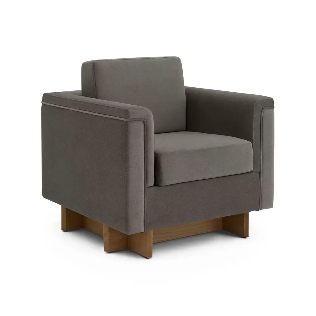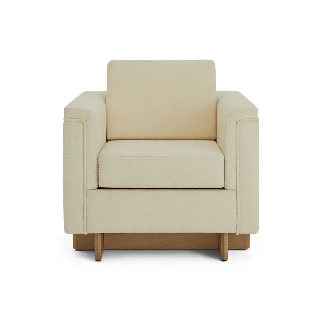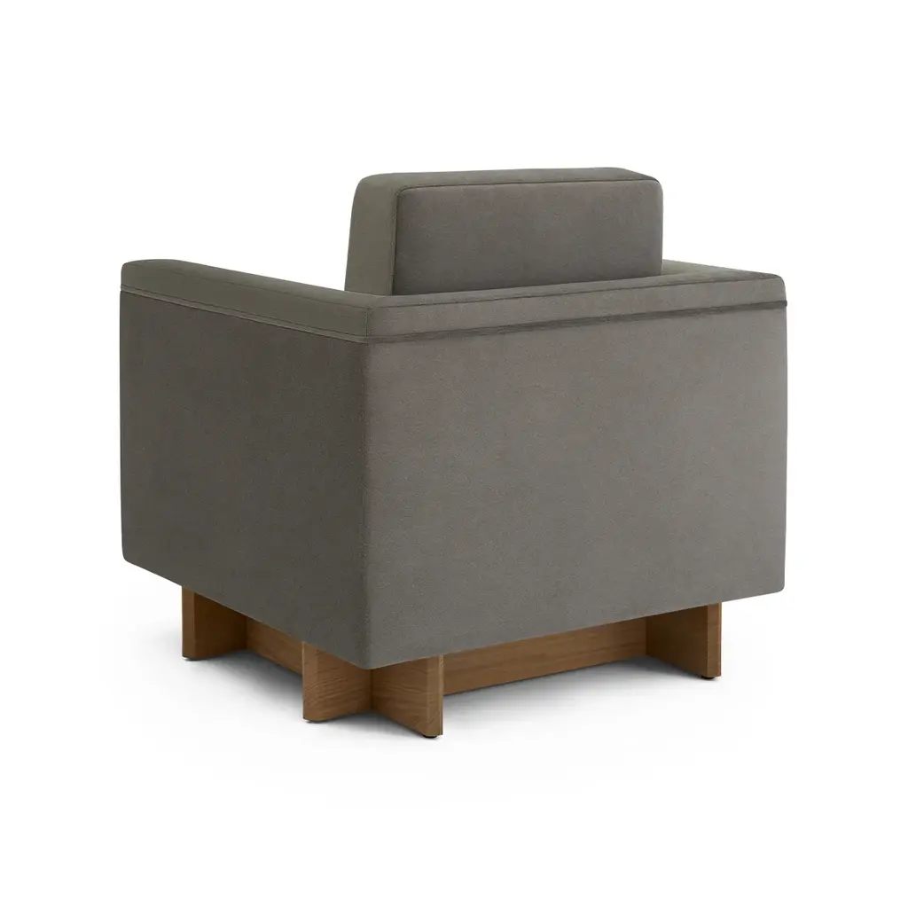 The Frank Lloyd Wright Galesburg Lounge Chair from Steelcase combines iconic Mid-Century Modern design with a contemporary flair. Inspired by Wright’s "Usonian" principles, this chair boasts a solid oak base and plush tailored fabric, showcasing the master architect’s signature style. Elevate any space with the chic simplicity of this timeless piece. Highlights
