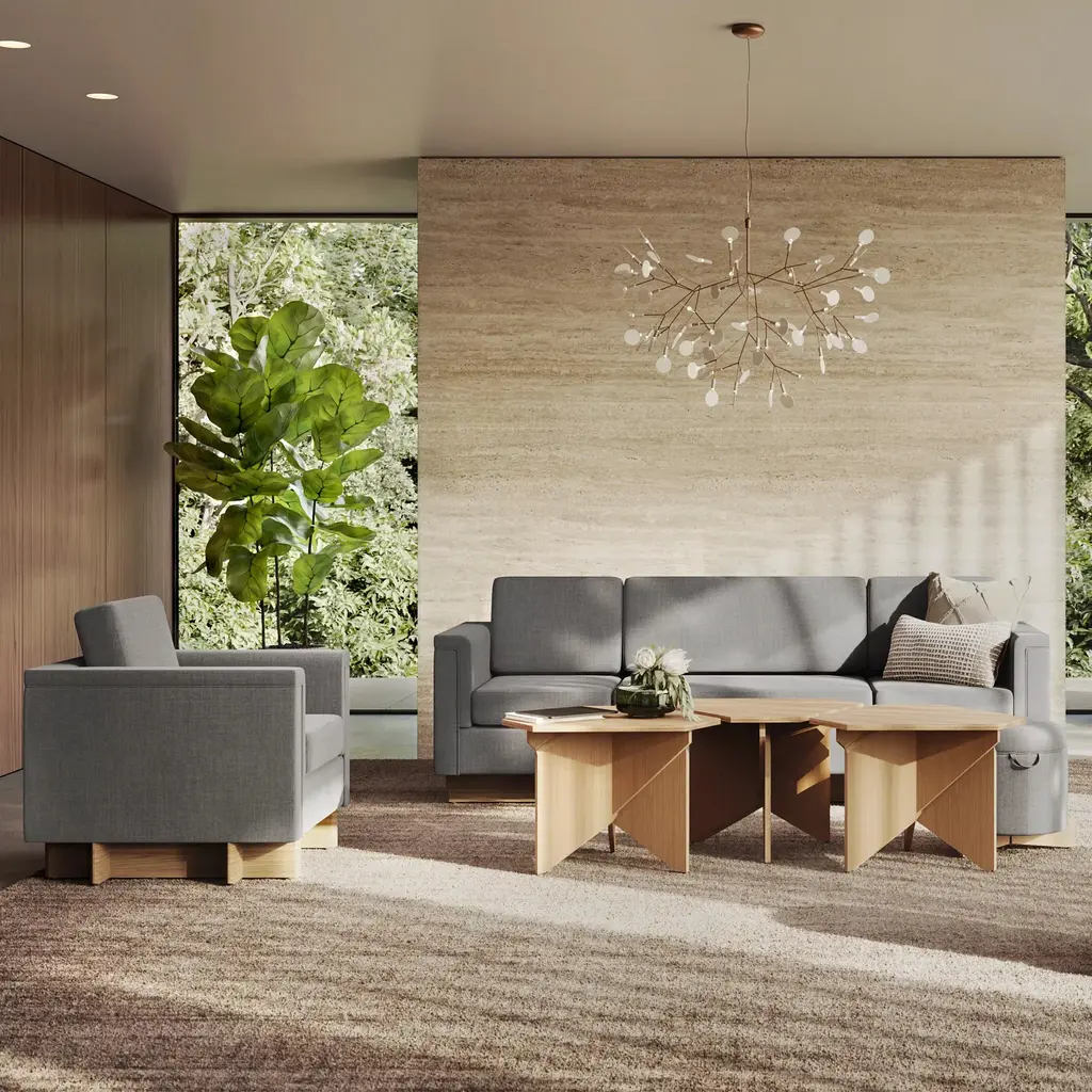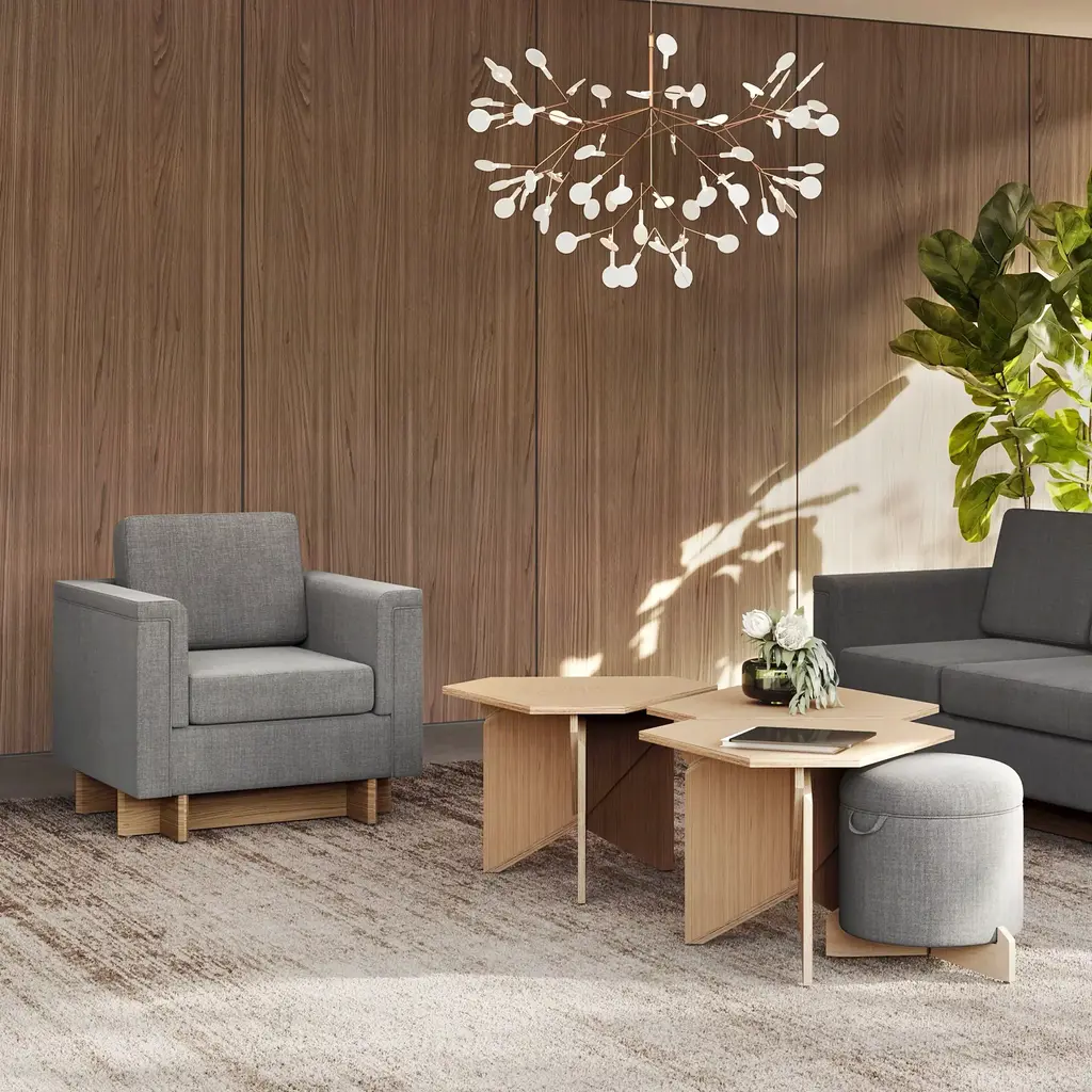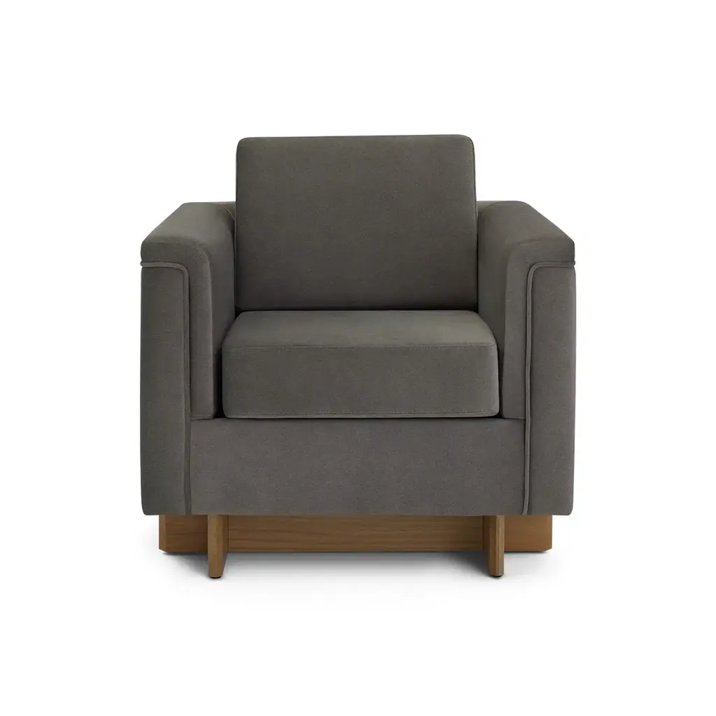 The Frank Lloyd Wright Galesburg Lounge Chair from Steelcase combines iconic Mid-Century Modern design with a contemporary flair. Inspired by Wright’s "Usonian" principles, this chair boasts a solid oak base and plush tailored fabric, showcasing the master architect’s signature style. Elevate any space with the chic simplicity of this timeless piece. Highlights