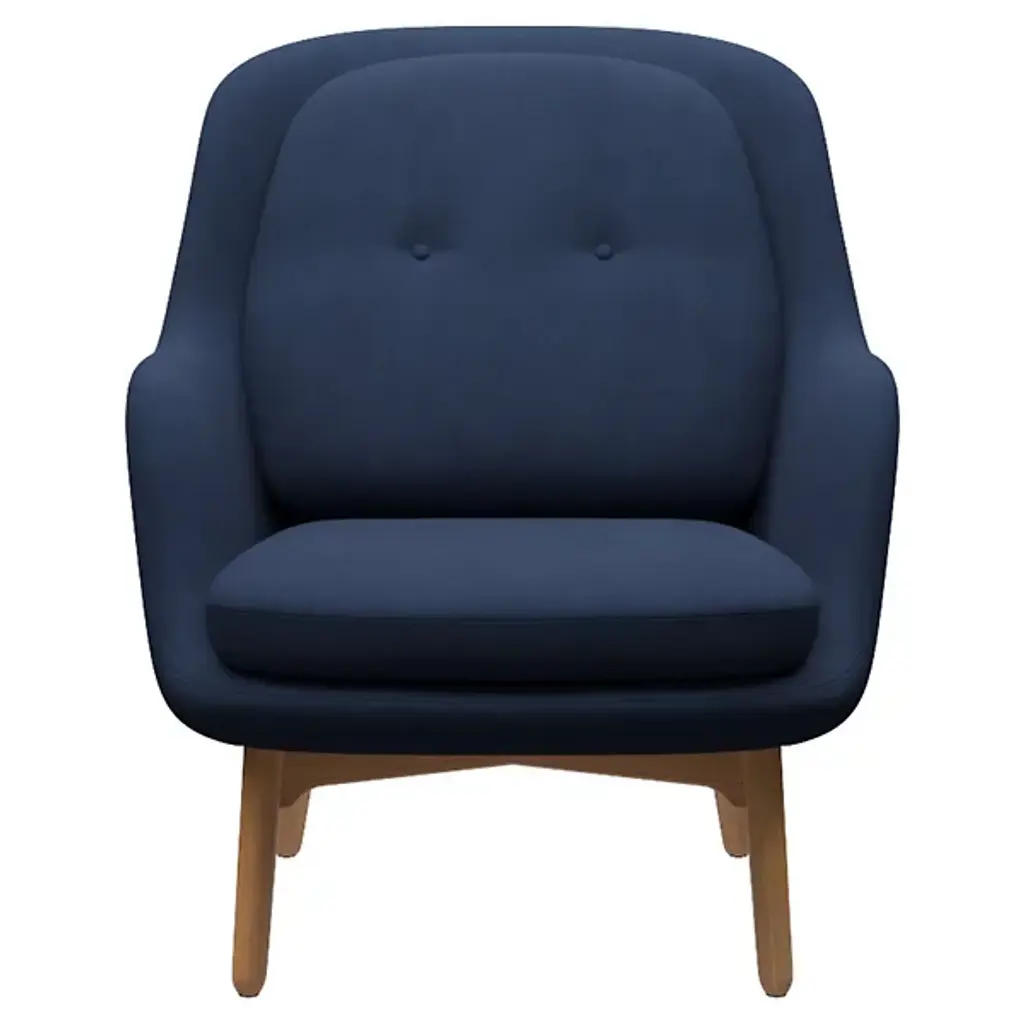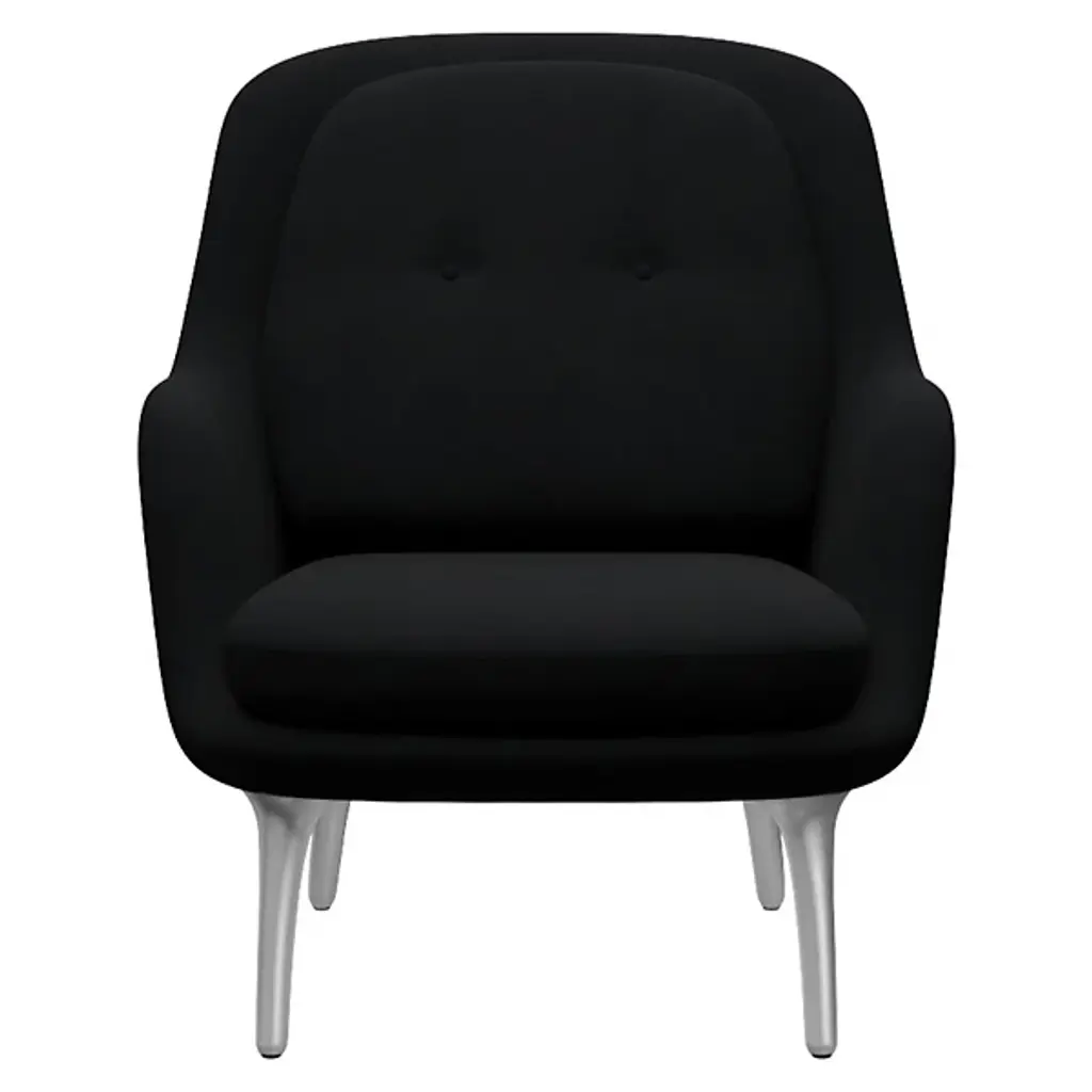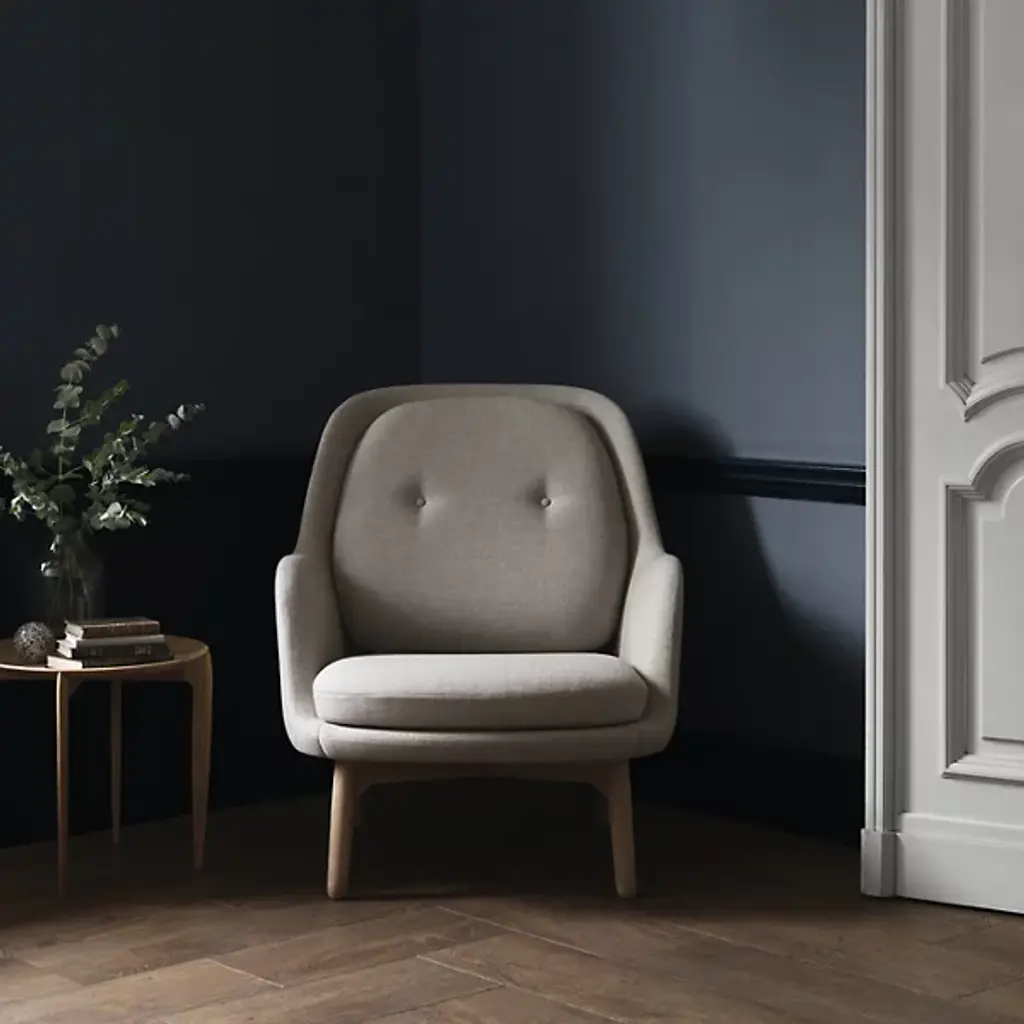 The Fri Lounge Chair from Fritz Hansen is designed by the acclaimed Jaime Hayon. This beautifully crafted chair seamlessly blends Scandinavian and contemporary styles, offering aesthetic appeal and exceptional comfort. It features an elegantly contoured seat and seatback that envelop you in luxury, providing a relaxing and supportive seating experience. Upholstered in premium Christianshavn fabric, it showcases a sophisticated look. The high-quality foam fill material adds to the chair's comfort. Committed to sustainability, it's FSC-Certified, sourced from responsibly managed forests, and Greenguard Certified, meeting strict low chemical emissions standards.
