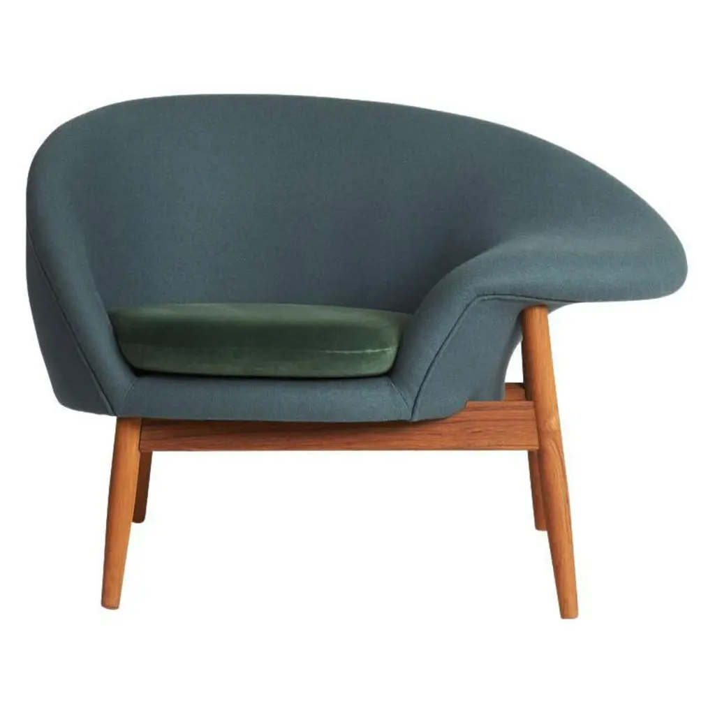 The Fried Egg Right Lounge Chair from Warm Nordic brings a jubilant sensibility to your living space. Designed by Hans Olsen in 1956, this lounge chair celebrates Scandinavian design. This chair is recognized by its nebulous shape. One of your chair arms contours around the edge of Fried Egg’s oiled solid teak frame, giving this piece a whimsical quality. Your lounge chair is filled with foam for your comfort and is made available in a variety of textile bends.