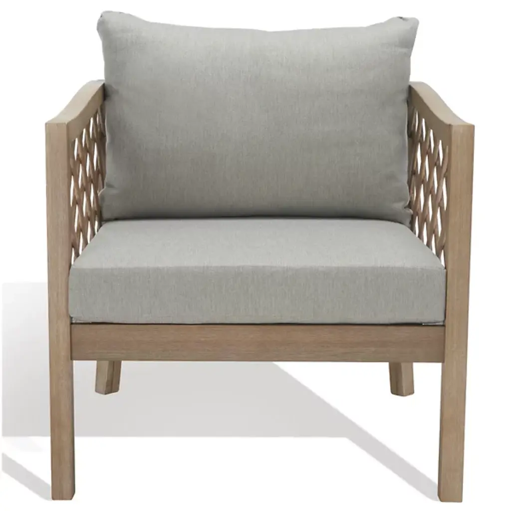 The Garza Wood Outdoor Patio Lounge Chair from Alder & Ore showcases the art of rope weaving in outdoor furniture design. Hand-woven patterns flow across the frame, creating an intricate play of light and shadow. The eucalyptus structure provides unwavering support beneath its artisanal details. Premium Olefin cushions maintain their resilience through changing seasons while resisting environmental damage. Each angle and curve have been calculated for optimal body support. This chair demonstrates how traditional craftsmanship can enhance modern outdoor living spaces without compromising comfort or durability.