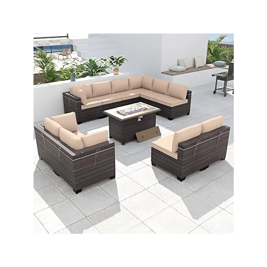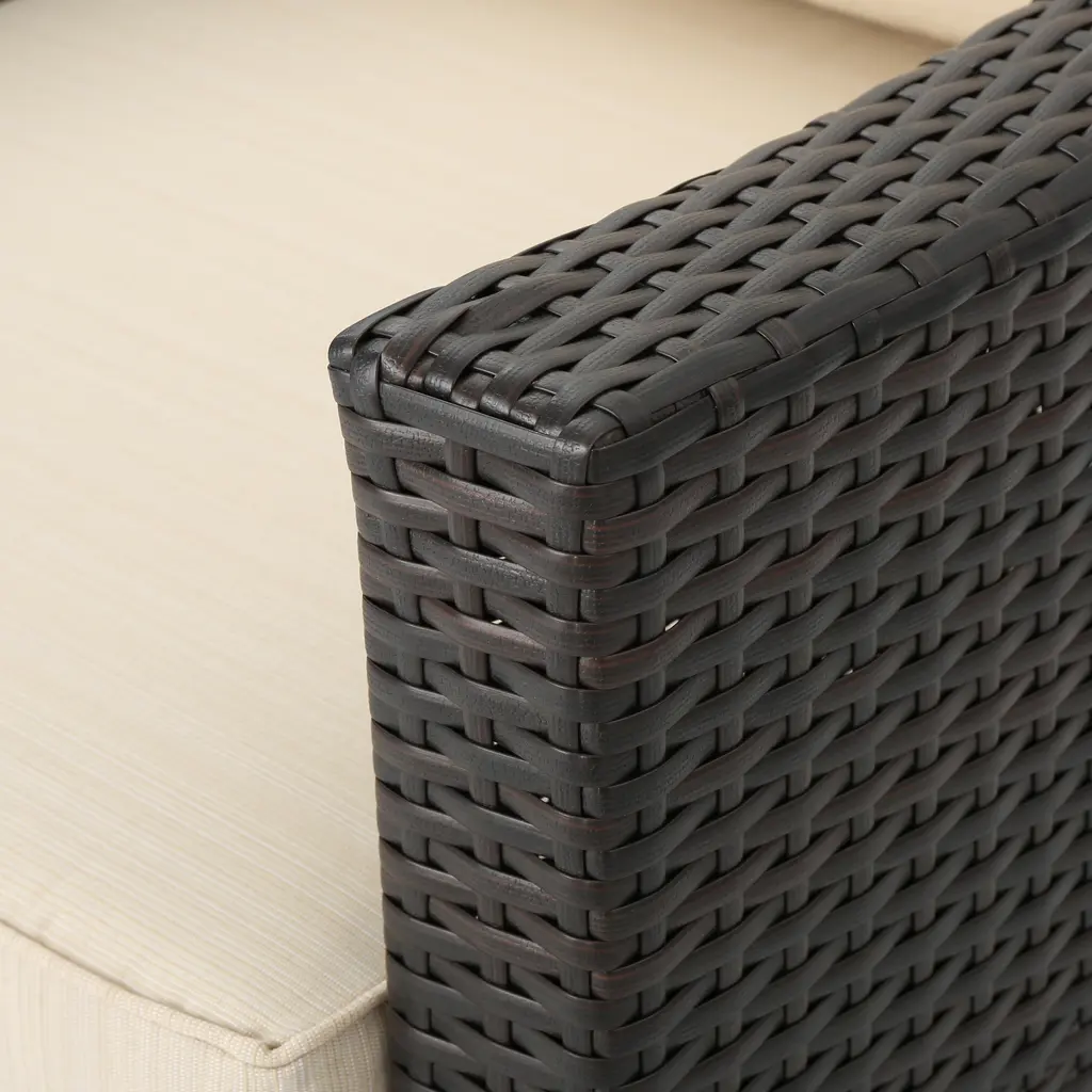 Gdf Studio 5-Piece Andrew Outdoor Wicker Chat Set With Fire Pit, Beige