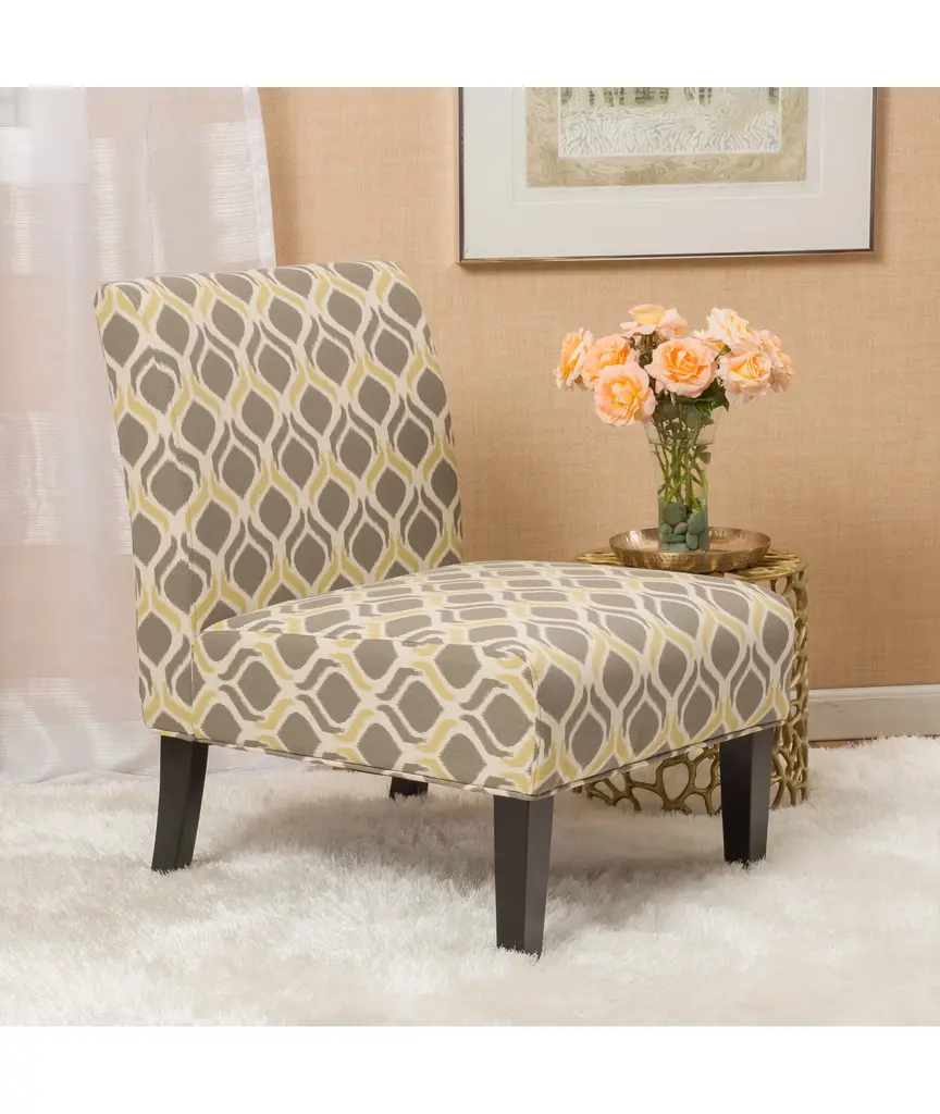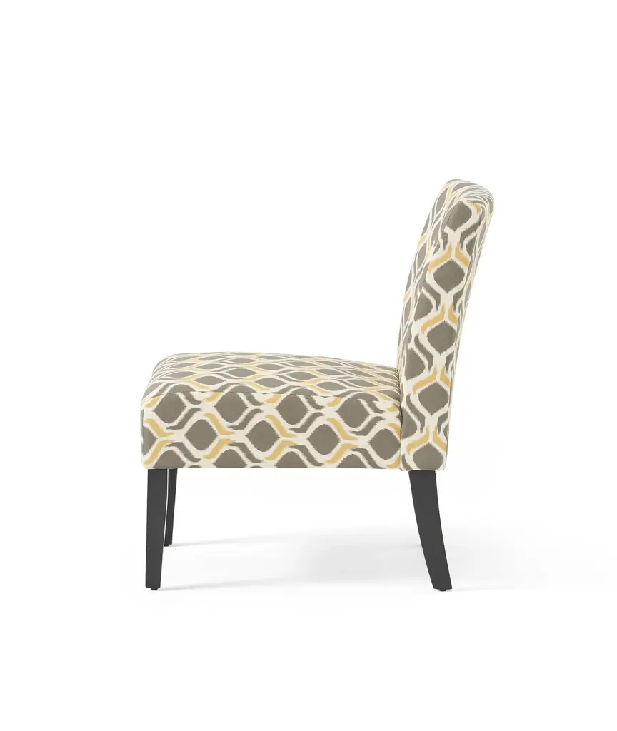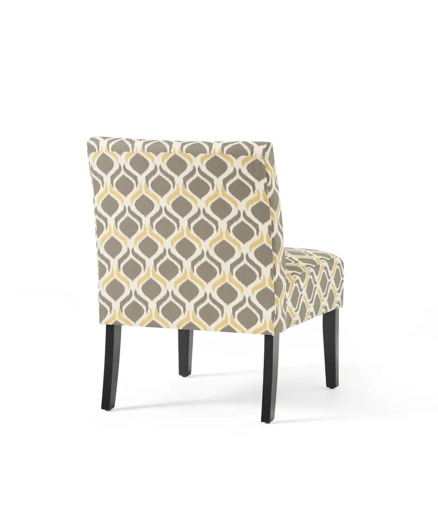 Gdf Studio Kalee Contemporary Accent Chair, Yellow And Gray Ikat Pattern/ Matte Black, Fabric