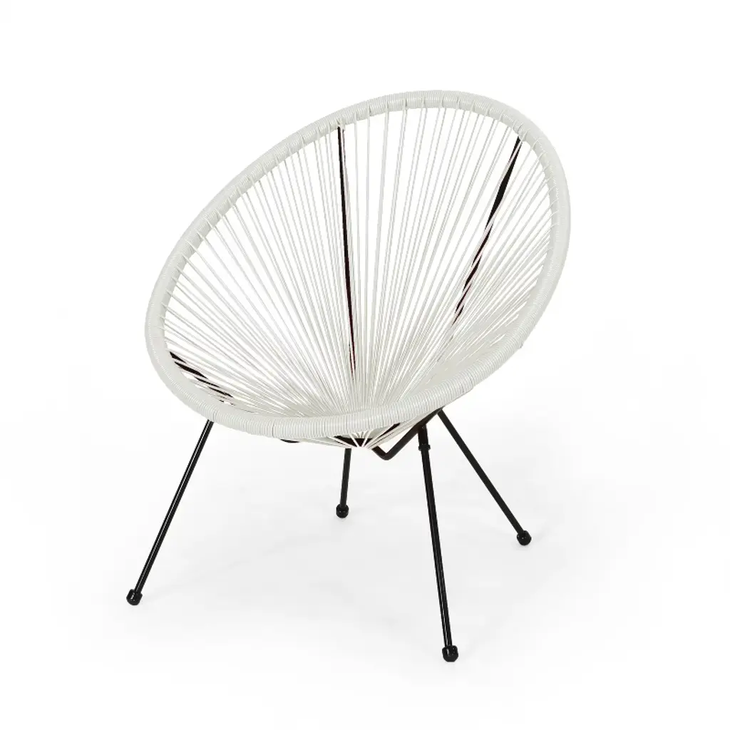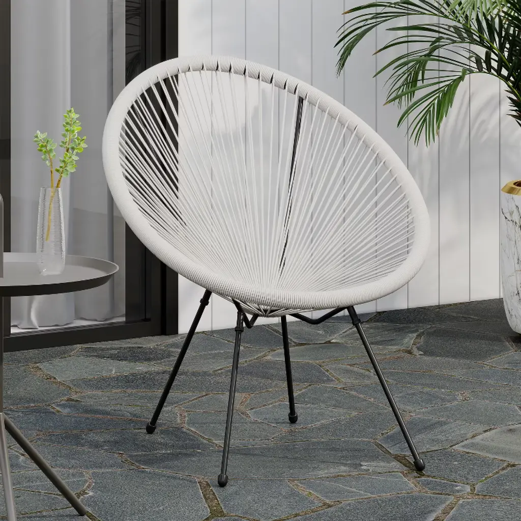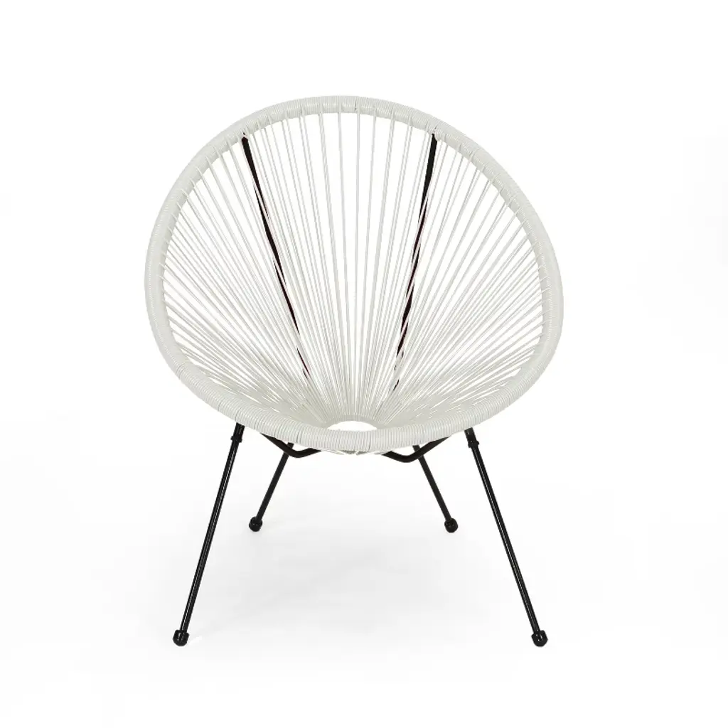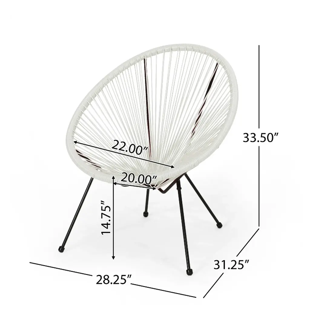 Upgrade your outdoor seating with this modern woven lounge chair, crafted with a durable steel frame and long-lasting faux rattan. Designed for ultimate comfort and style, it features a classic basket silhouette and a timeless hammock weave that cradles your body perfectly. Available in multiple colors, this versatile chair effortlessly complements patios, gardens, and balconies. Relax and enjoy sunny days or cozy evenings in a seat that blends sophisticated design with lasting durability. Minimal assembly required for quick setup. Material: Faux Rattan Frame Material: Steel Multiple Color Options Frame Finish: Black Assembly Required Dimensions: 31.25 inches deep x 28.25 inches wide x 33.50 inches high Seat Dimensions: 20.00 inches deep x 22.00 inches wide x 14.75 inches high Weight Capacity: 400 lbs
