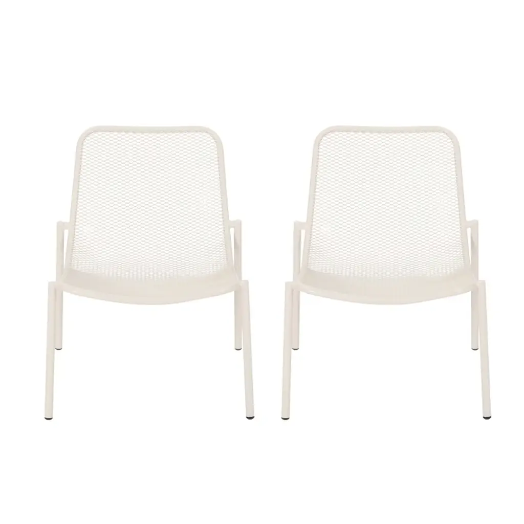 Gdfstudio Douglas Outdoor Metal Mesh Accent Chairs (Set Of 2), Matte White