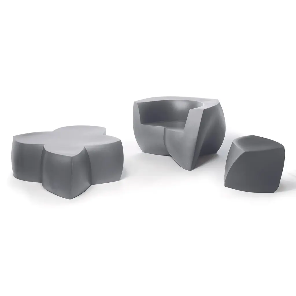An eye-catching and sculptural modern seating option, the Frank Gehry Easy Chair from Heller brings dynamic design to any space. Designed by architect Frank Gehry, this armchair is the ideal seat for both indoor and outdoor use—poolside, part of a child's playroom or contemporary lobby seating area.Highlights
