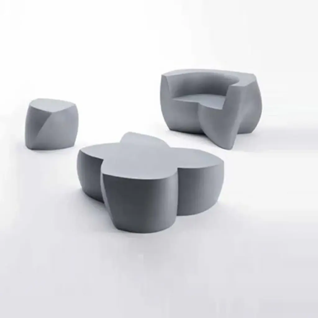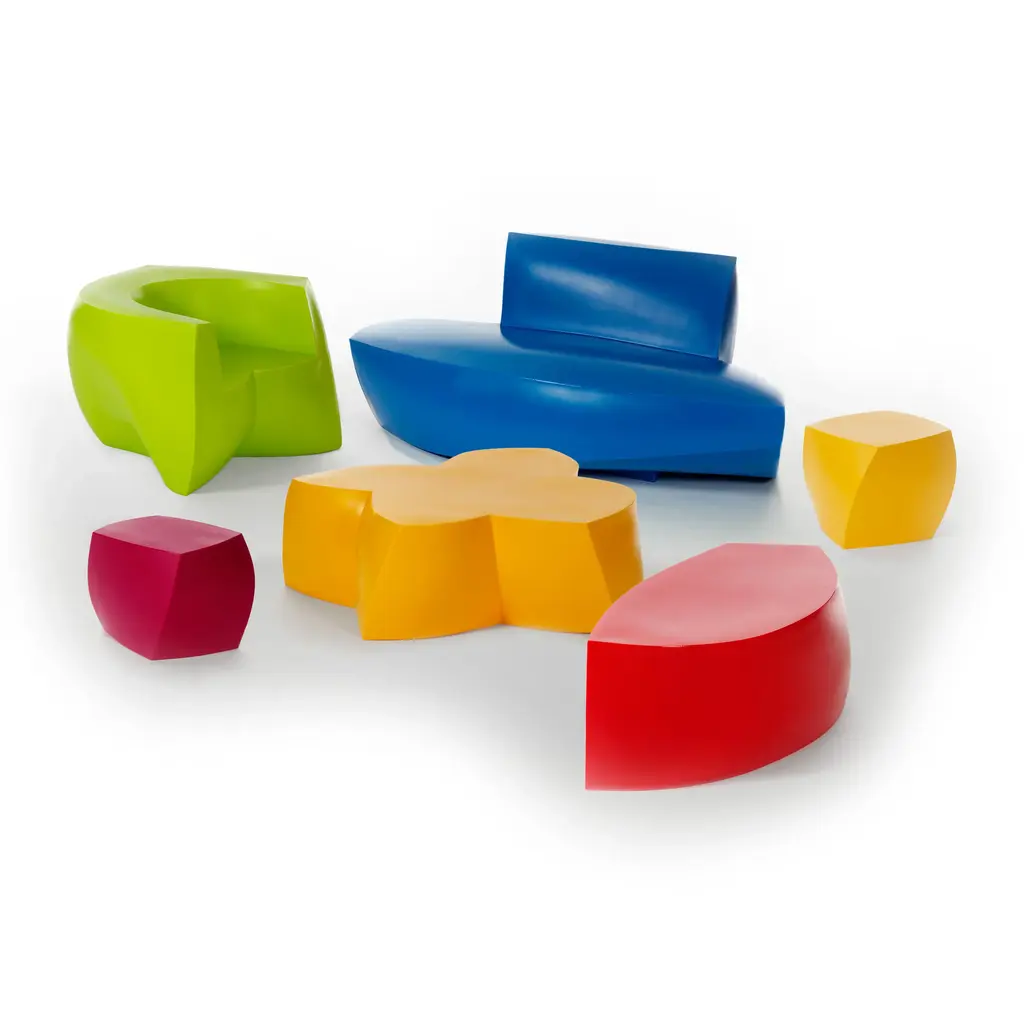 An eye-catching and sculptural modern seating option, the Frank Gehry Easy Chair from Heller brings dynamic design to any space. Designed by architect Frank Gehry, this armchair is the ideal seat for both indoor and outdoor use—poolside, part of a child's playroom or contemporary lobby seating area.Highlights