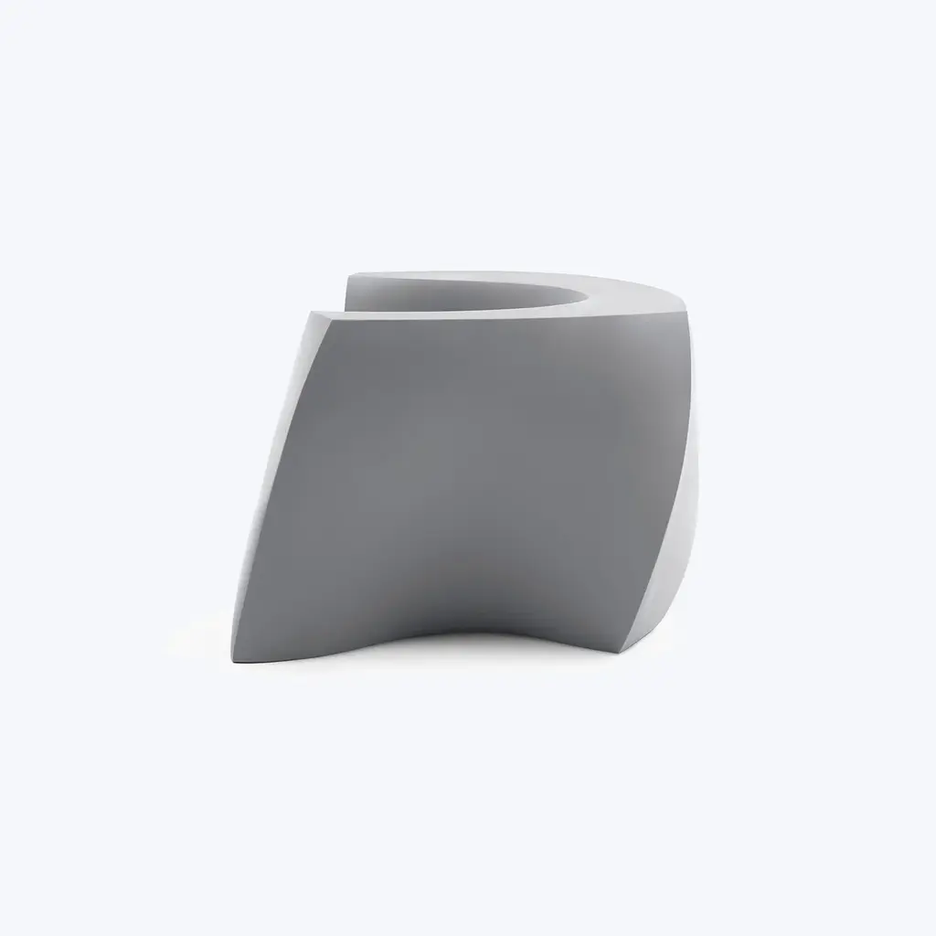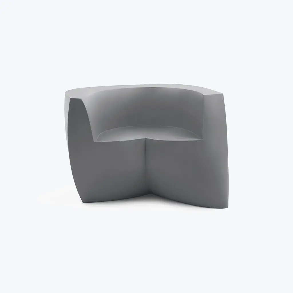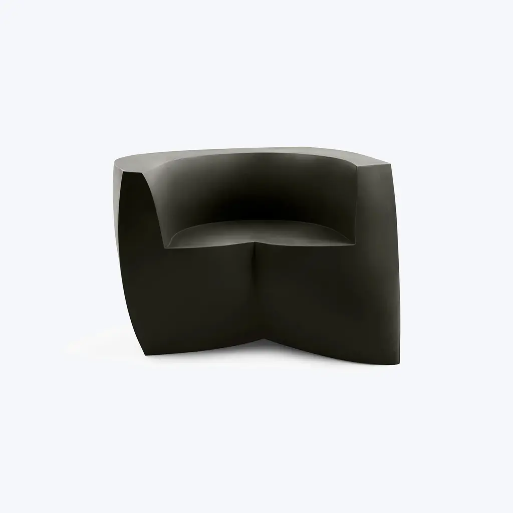 Bringing a new twist to modern lounge seating, the indoor-outdoor Gehry Easy Chair is a sculptural shape that looks different from every angle. Its mix of straight and curved lines are eye-catching as well as very practical, as they invite the sitter to face in any direction. Made in the USA, this modern sofa is a stunning addition to any commercial, institutional, or residential space – indoors or outdoors.The Gehry Easy Chair is part of an innovative furniture collection created by one of the world’s most celebrated architects that exhibits his passion for twisting, unconventionally shapes. This hollow single-piece form features consistent wall thickness and stress-free outer corners for supreme resistance to breakage. It weighs 86 pounds, but if you’d like to add dry play sand for more wind resistance, there is a hole with a removable plug on the underside.