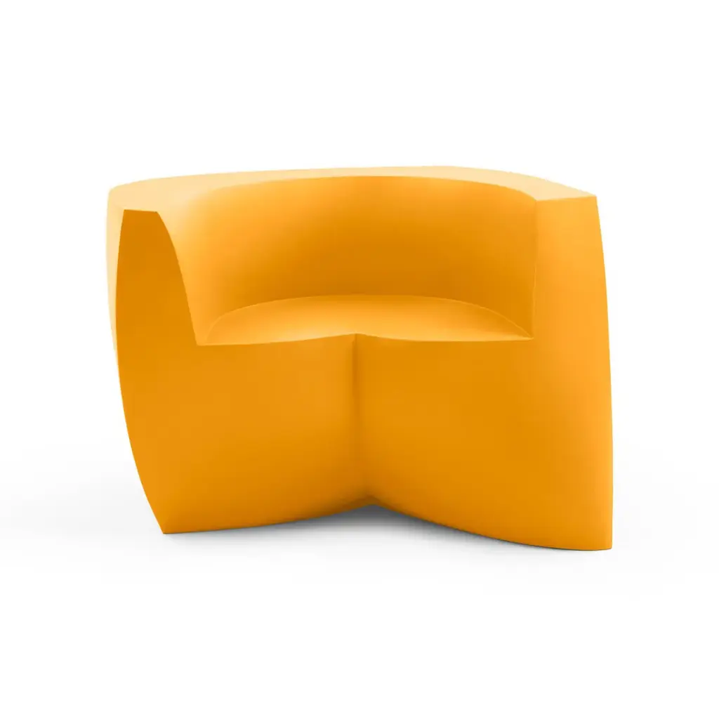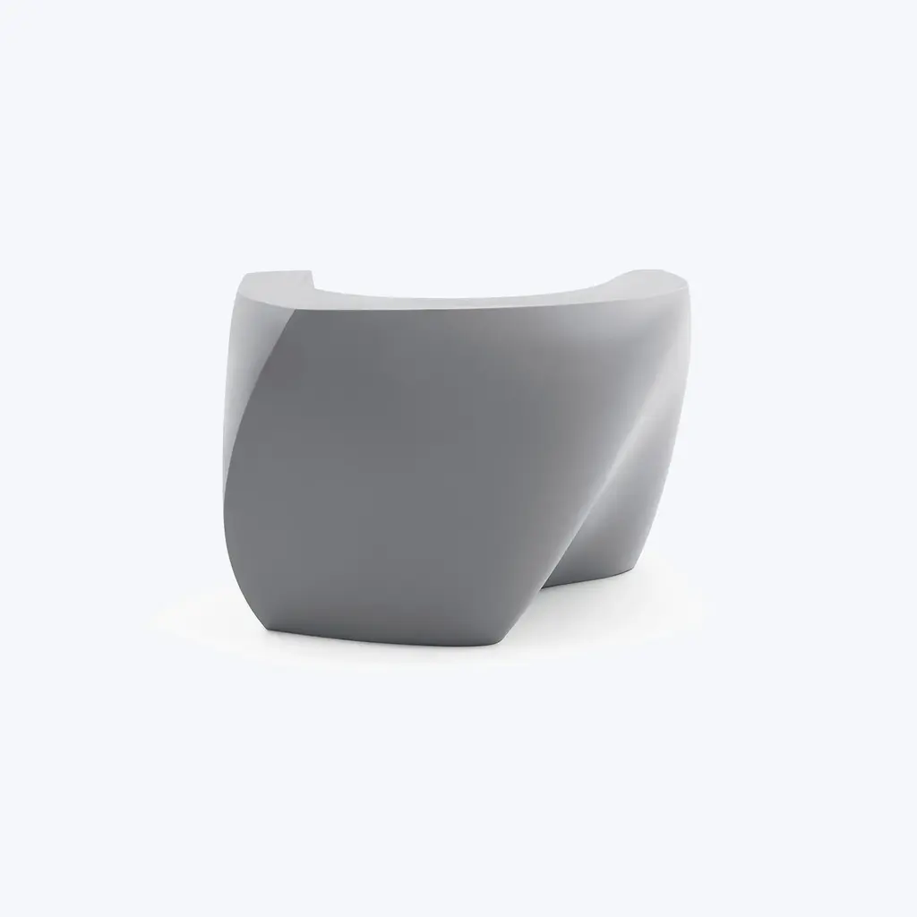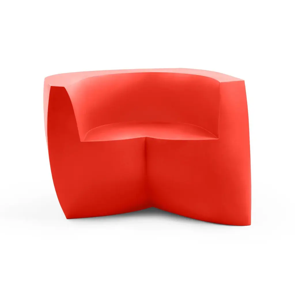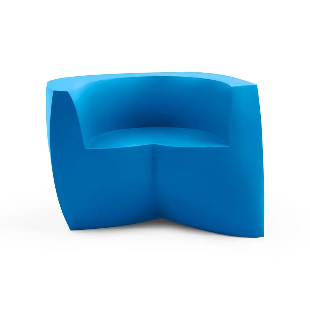 Bringing a new twist to modern lounge seating, the indoor-outdoor Gehry Easy Chair is a sculptural shape that looks different from every angle. Its mix of straight and curved lines are eye-catching as well as very practical, as they invite the sitter to face in any direction. Made in the USA, this modern sofa is a stunning addition to any commercial, institutional, or residential space – indoors or outdoors.The Gehry Easy Chair is part of an innovative furniture collection created by one of the world’s most celebrated architects that exhibits his passion for twisting, unconventionally shapes. This hollow single-piece form features consistent wall thickness and stress-free outer corners for supreme resistance to breakage. It weighs 86 pounds, but if you’d like to add dry play sand for more wind resistance, there is a hole with a removable plug on the underside.