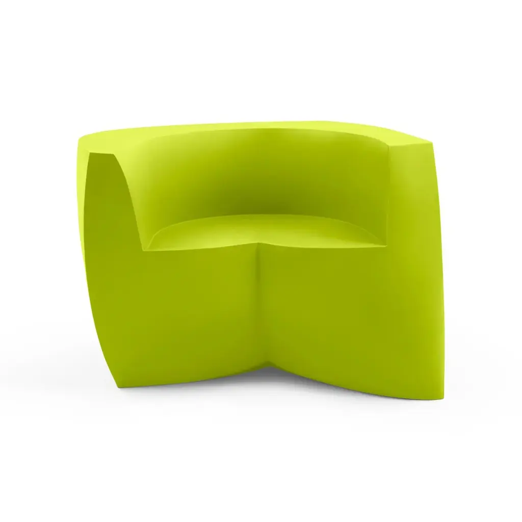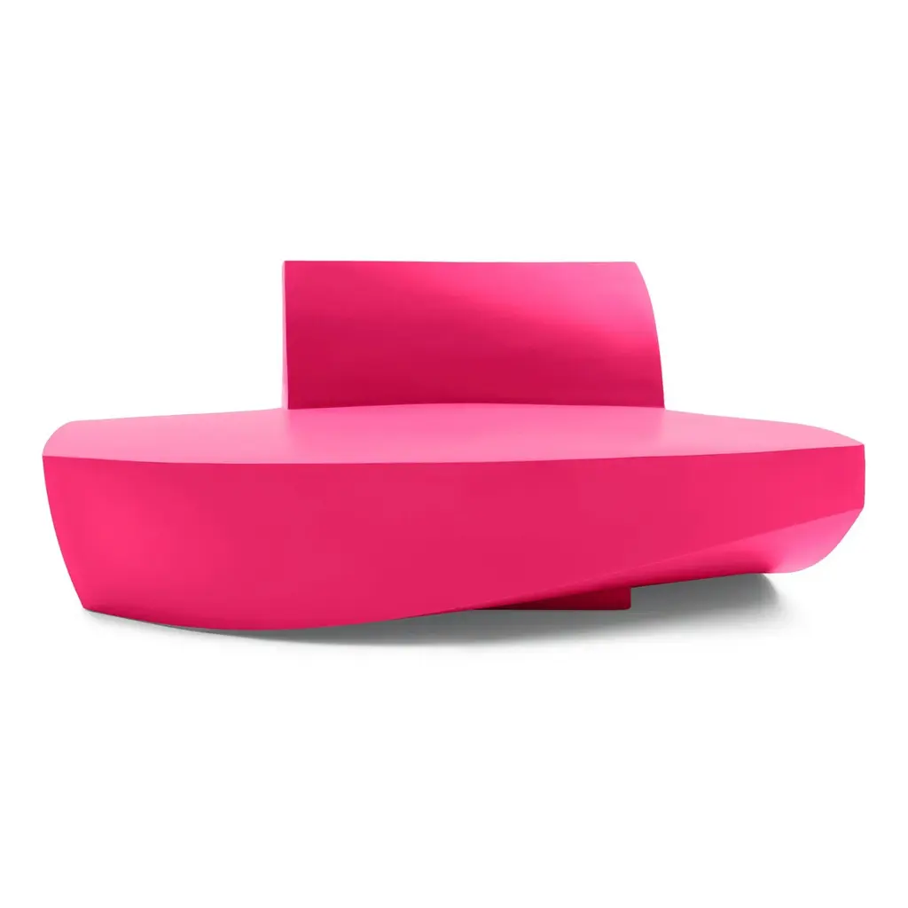 Bringing a new twist to modern lounge seating, the indoor-outdoor Gehry Easy Chair is a sculptural shape that looks different from every angle. Its mix of straight and curved lines are eye-catching as well as very practical, as they invite the sitter to face in any direction. Made in the USA, this modern sofa is a stunning addition to any commercial, institutional, or residential space – indoors or outdoors.The Gehry Easy Chair is part of an innovative furniture collection created by one of the world’s most celebrated architects that exhibits his passion for twisting, unconventionally shapes. This hollow single-piece form features consistent wall thickness and stress-free outer corners for supreme resistance to breakage. It weighs 86 pounds, but if you’d like to add dry play sand for more wind resistance, there is a hole with a removable plug on the underside.