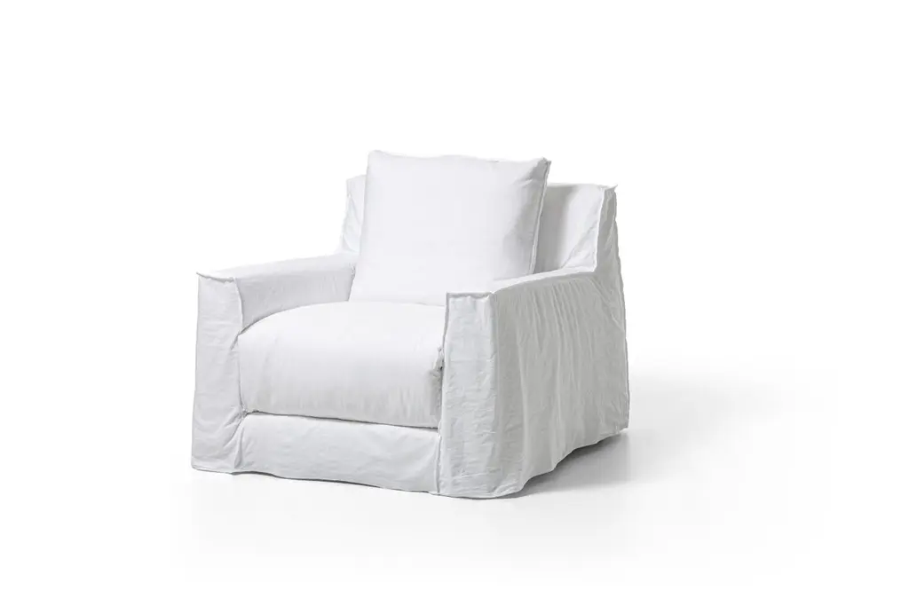 Gervasoni Loll 01 Armchair In White Linen Upholstery By Paola Navone