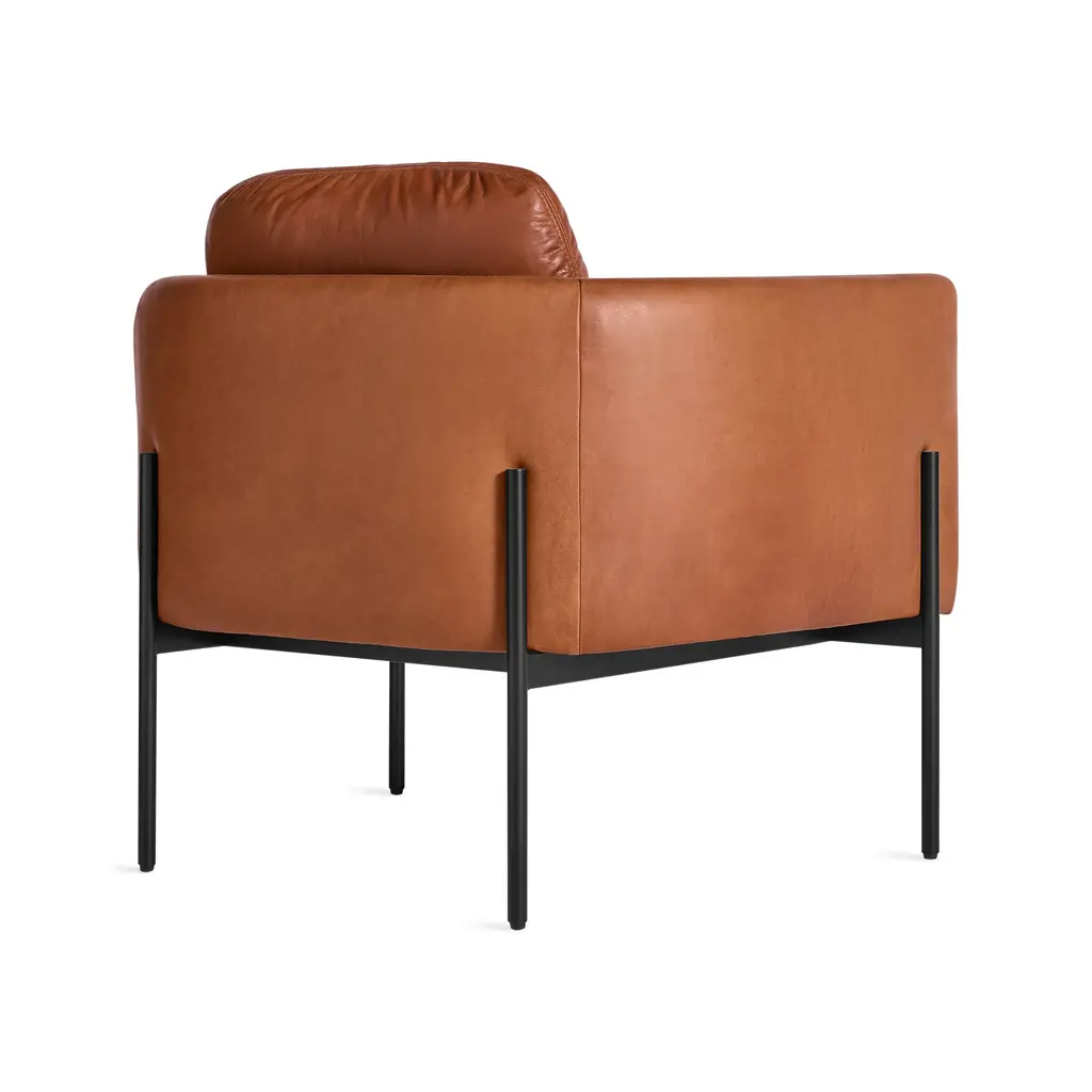 Indulge in subtle luxury with the Getup Lounge Chair from Blu Dot. Its tailored loose cushion and sleek metal frame provide both comfort and style, while the elegantly curved back adds a touch of sophistication. Designed to make a statement without shouting, this chair is the perfect addition to any tasteful entryway, living room, or office space. Highlights
