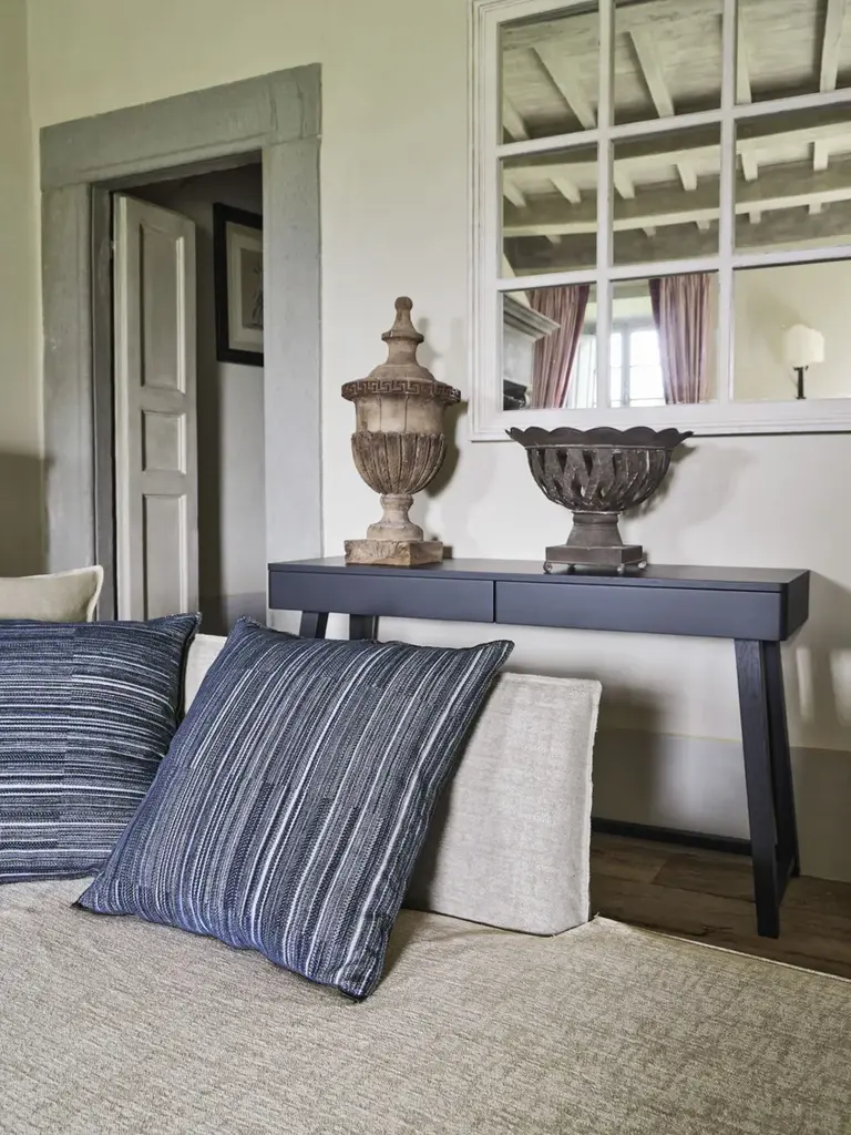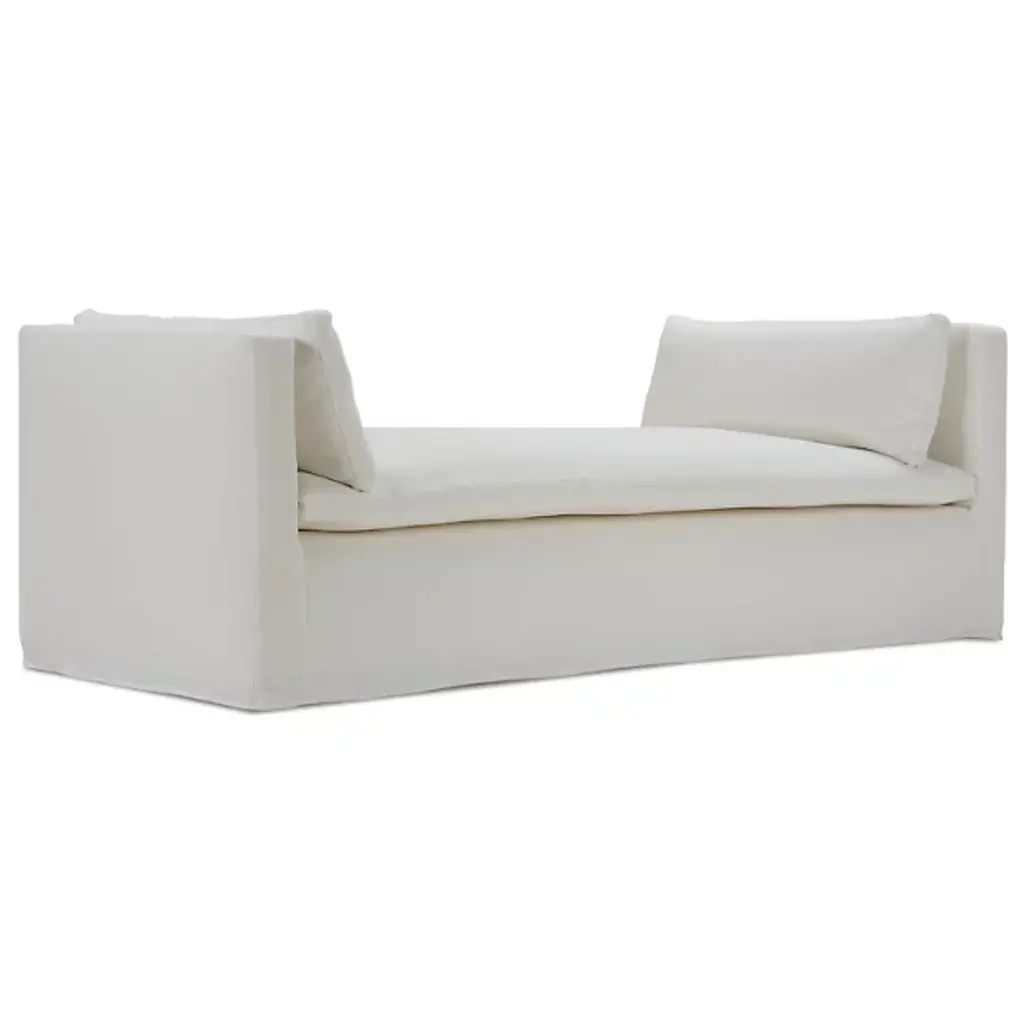 Ghost 30 L-R is the dormeuse, multilayer and solid wood frame, with elastic belts, upholstered with polyurethane foams, removable covers, right or left armrest. One back cushions in dacron and down 60 x 60 cm, two 50 x 50 cm.Comfort and versatility are the keywords that define Ghost, a collection of seats that are as comfortable and enveloping as their upholstery. The name of the collection is inspired by the white version which, thanks to the soft falling fabric, brings to mind the common imagination of ghosts. The large collection Ghost seats is developed around a light body with essential volumes that contains soft cushions. The main feature is the upholstery: an oversized housse whose profile is underlined by the visible stitching. Sofas, armchairs, ottomans, chairs and beds are undressed and dressed in a flash, like a change of clothes, taking on a different image each time, simple or sophisticated, depending on the personality of those who choose and live them.