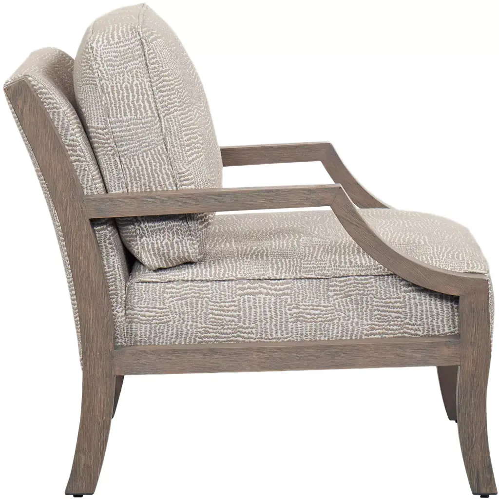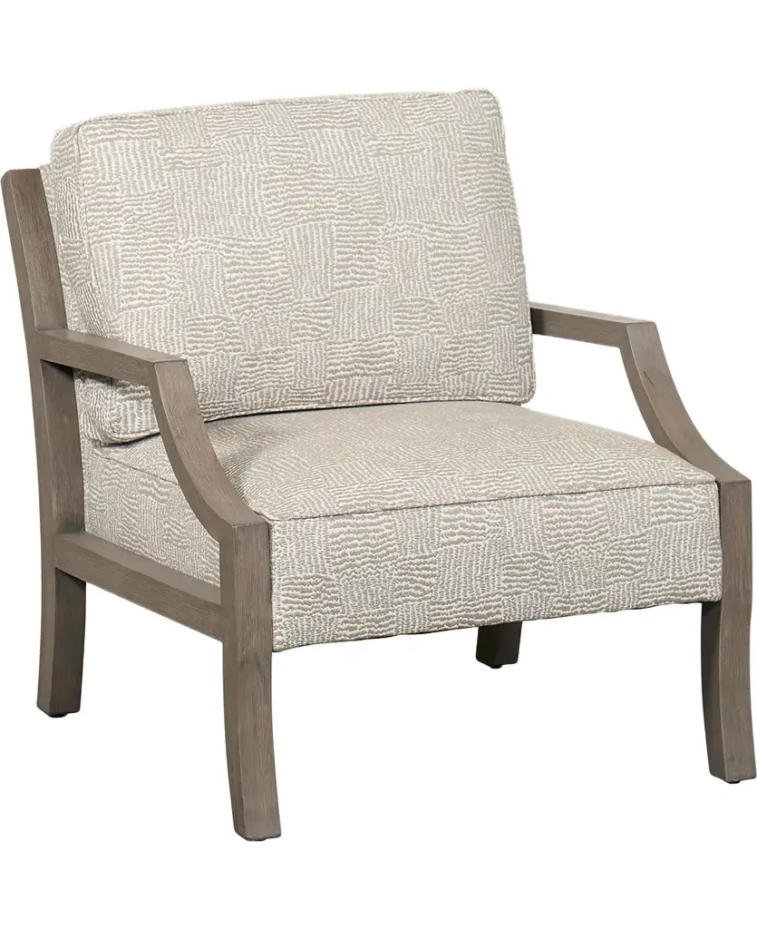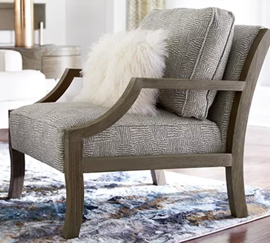 The exposed frame of our Gianna wood accent chair will make this piece a showstopper in any room. The blend of wood with neutral upholstery gives this chair a fresh twist on timeless appeal, while high-density cushioning provides superior comfort.